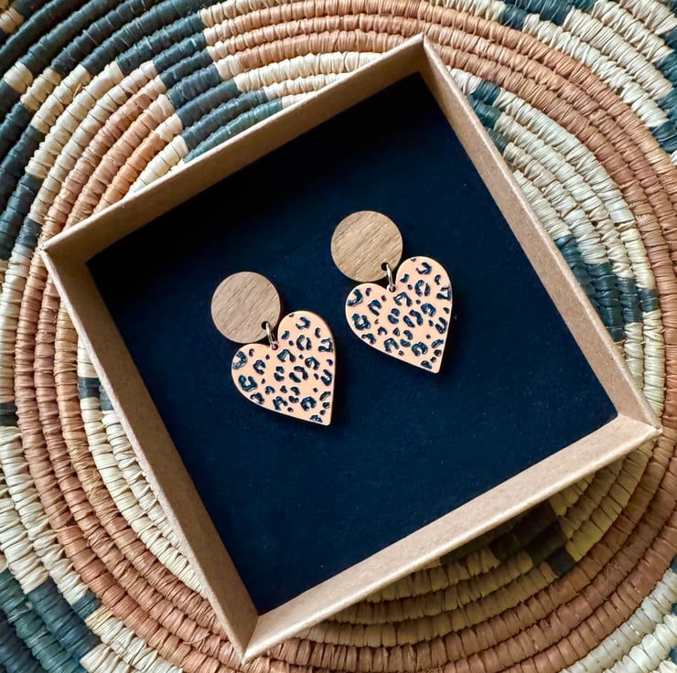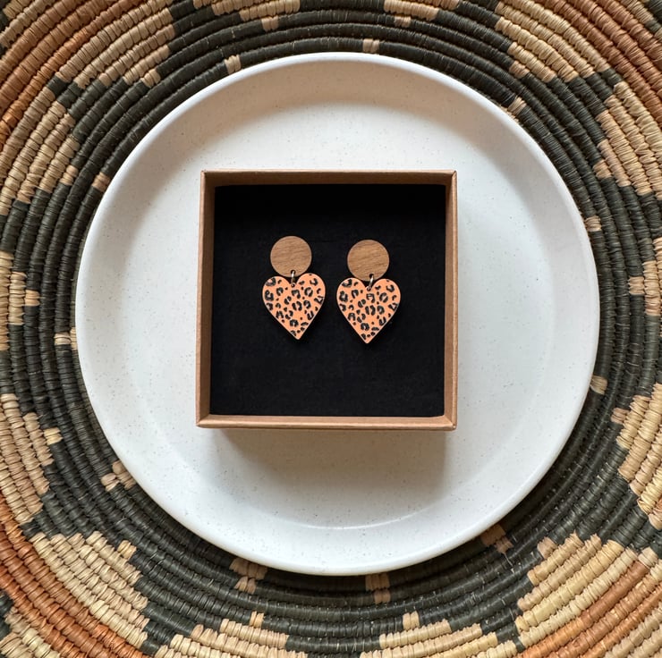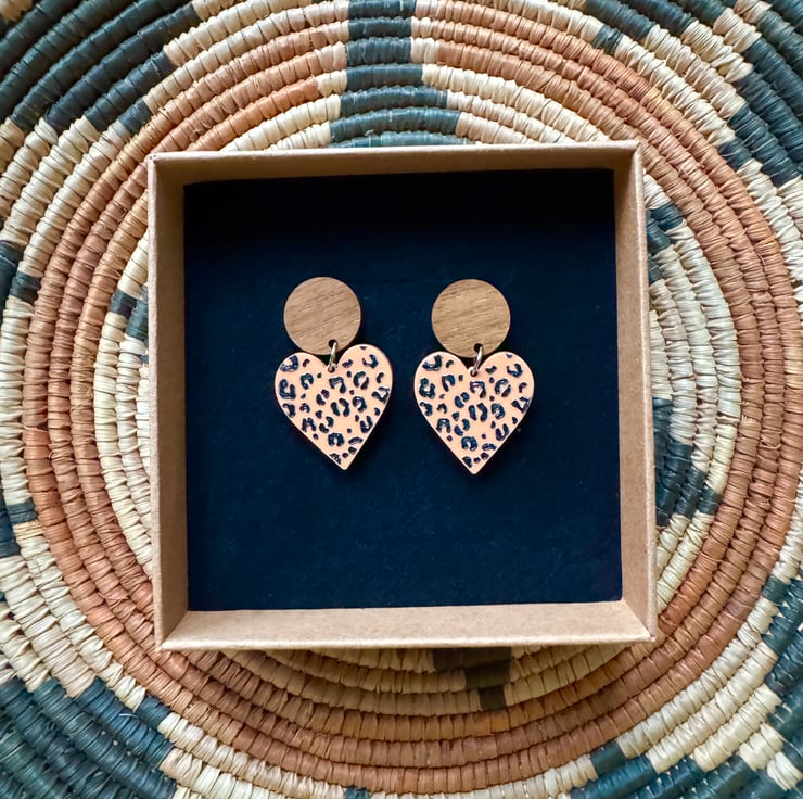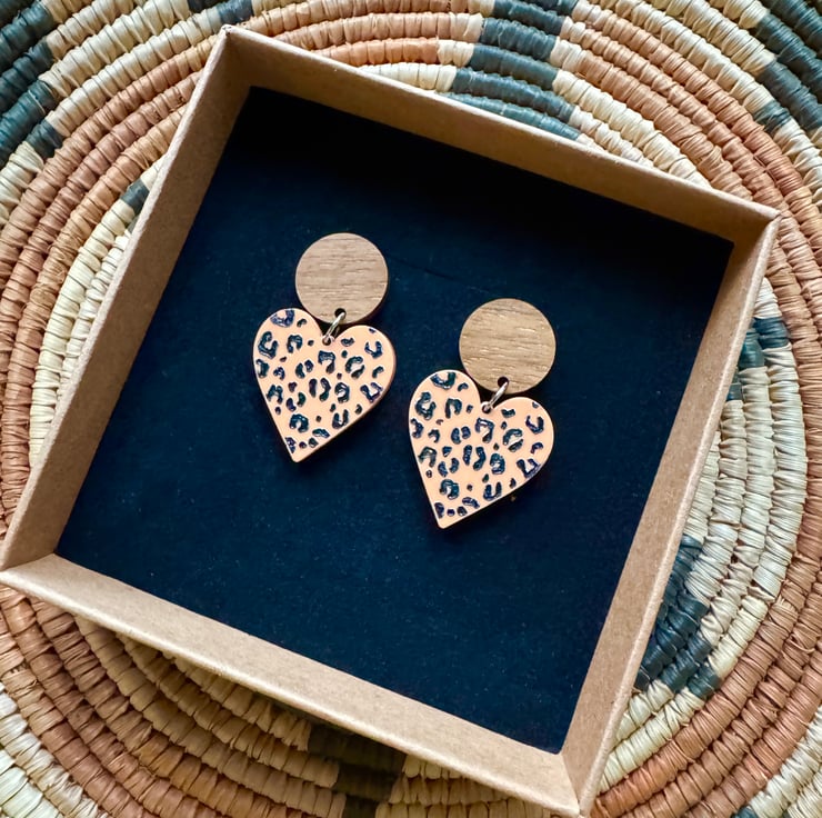 Bringing a soft, feminine charm to the design. Each heart is laser-engraved with a chic leopard print pattern, carefully infilled with black acrylic paint for striking contrast and added depth.