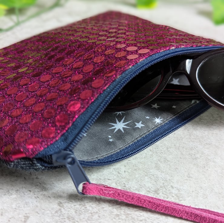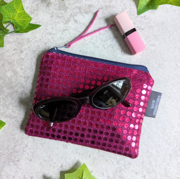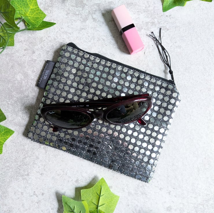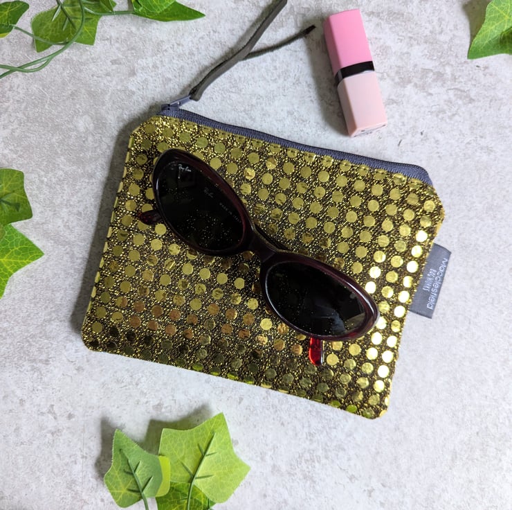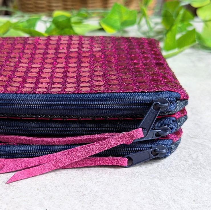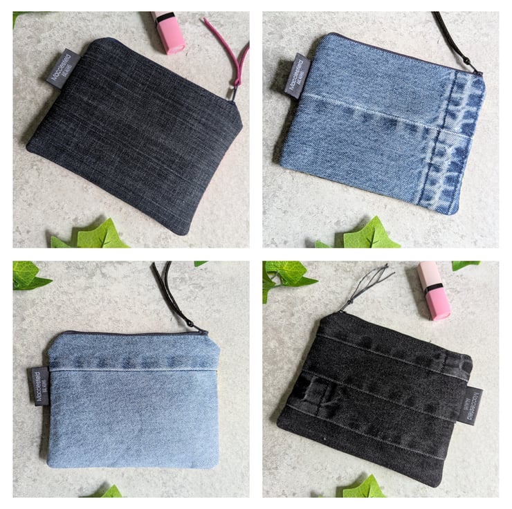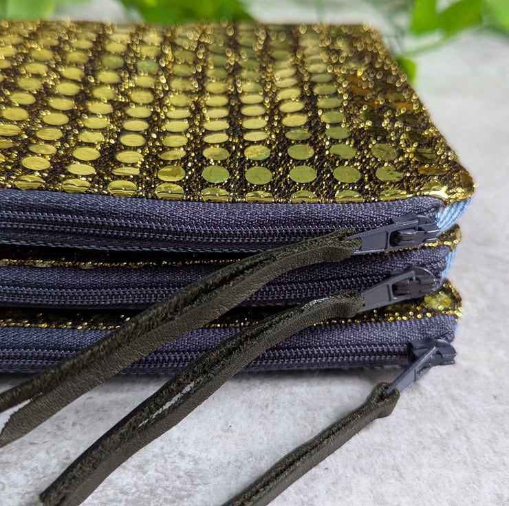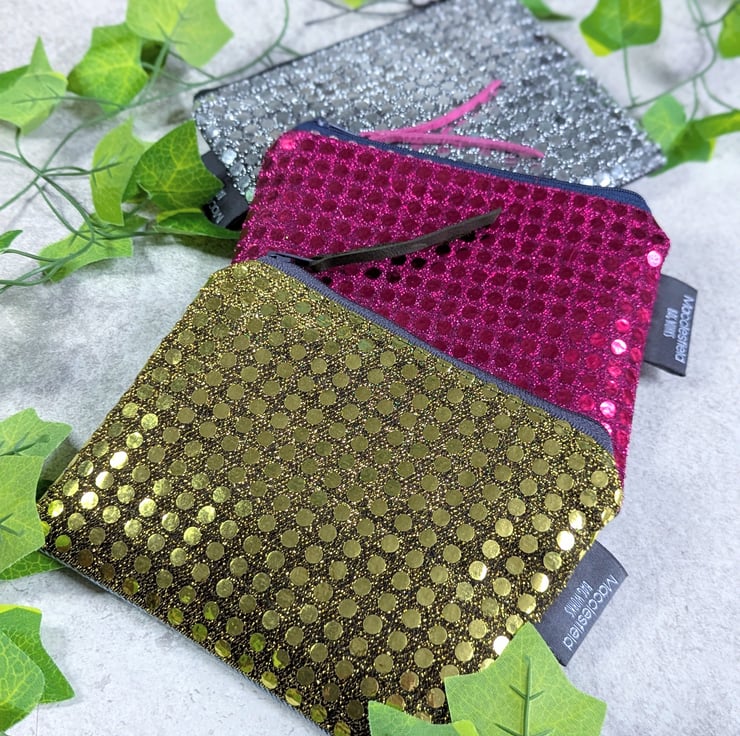 Sprinkled with a touch of glamour, these purses or pouches have been handmade from metallic faux sequin fabric and pre-loved denim pieces and would be ideal as a makeup bag or for keeping smaller items tidy in your bag. Just perfect as a gift to say 'thank you' or 'just thinking about you'.