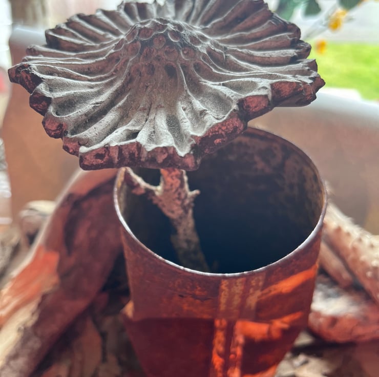 Black stoneware sunflower cane topper fired to 1060c …8/9mm hole for a cane (not supplied)…not frost proof…115mm diameter x 50mm deep approximately…thank you for looking…JK11