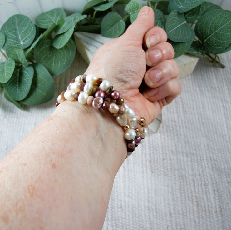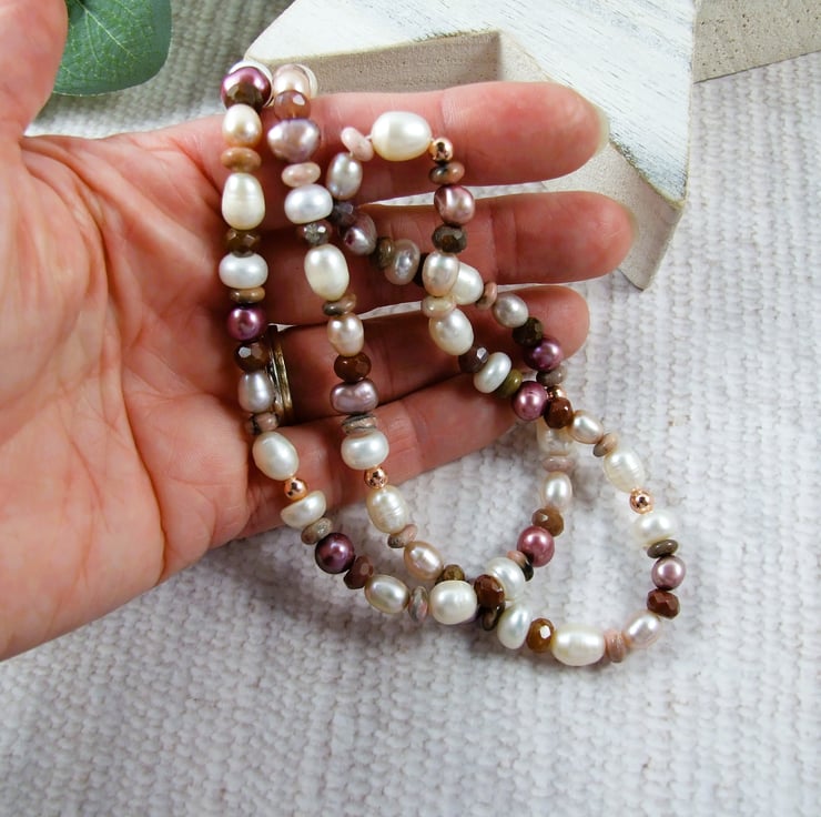 Pearl and Gemstone Neutrals Necklace with Rose Gold Accents