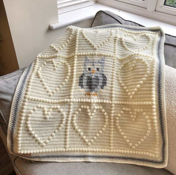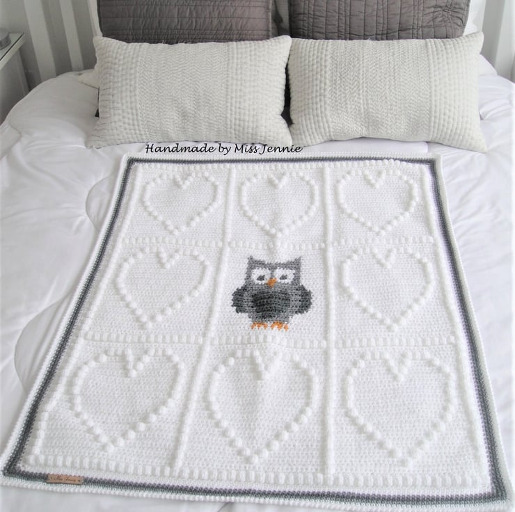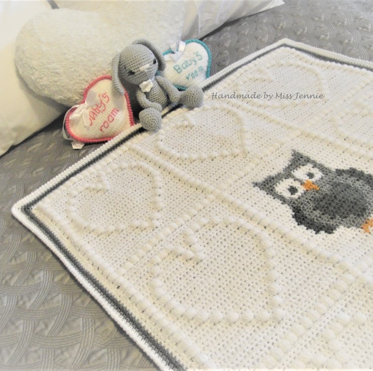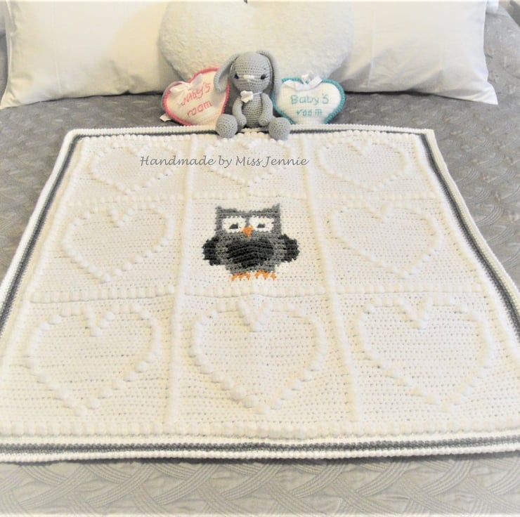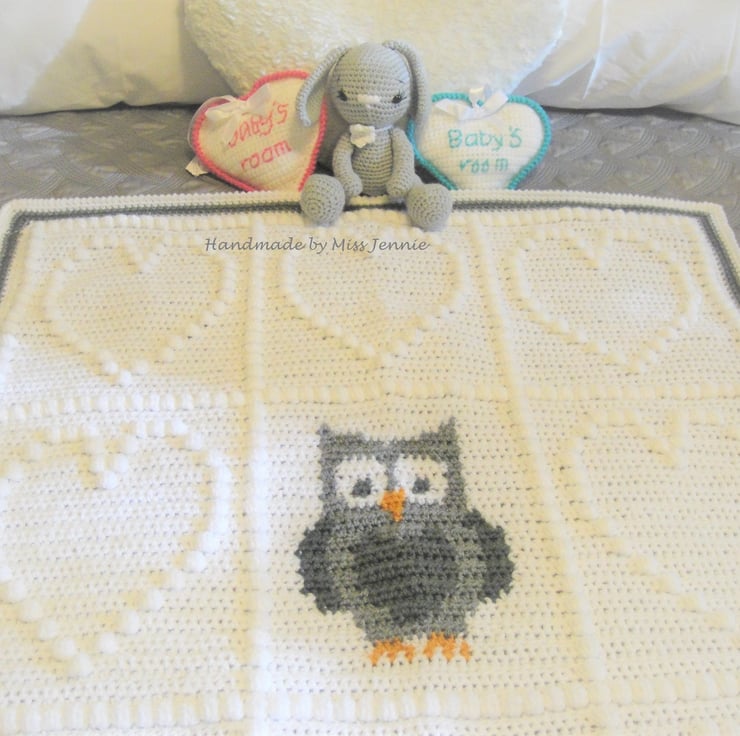 Love heart Owl Baby Blanket PatternAfghan pattern