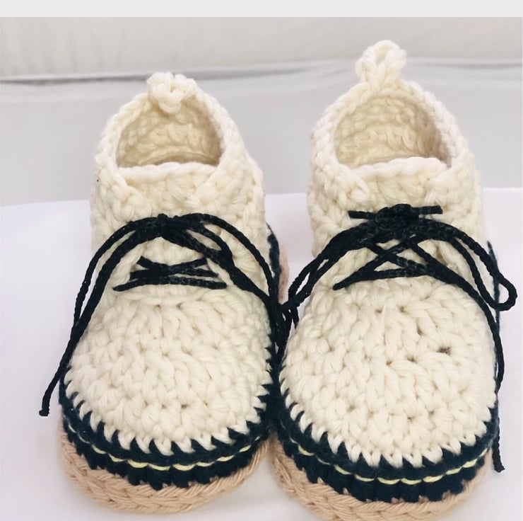 Perfect for tiny feet these gorgeous little booties are crocheted in a beautifully soft cotton yarn with black cord laces to add the finishing touch.