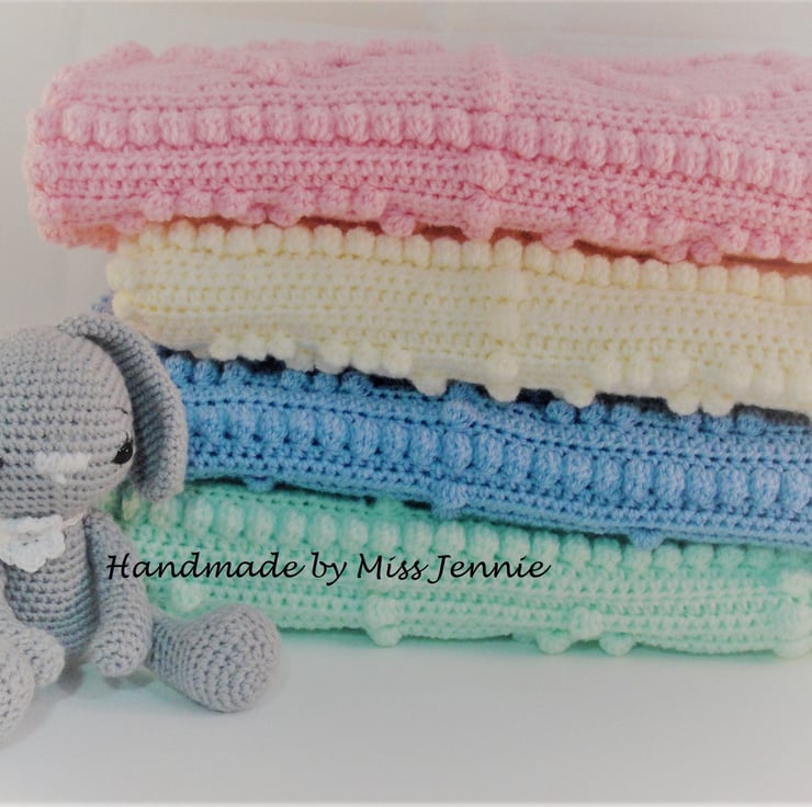 If you would prefer this blanket in another colour I have a large selection available (colour chart in photos) which I can make to order. Please note that colours on chart do not relate to all colours on photos as these are no longer available.
