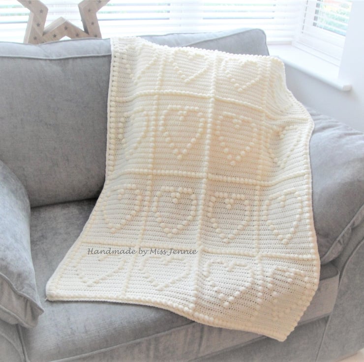 Crochet Baby Heart Blanket, Baby Star Blanket, Cot, Crib, Bassinet, Car seat
