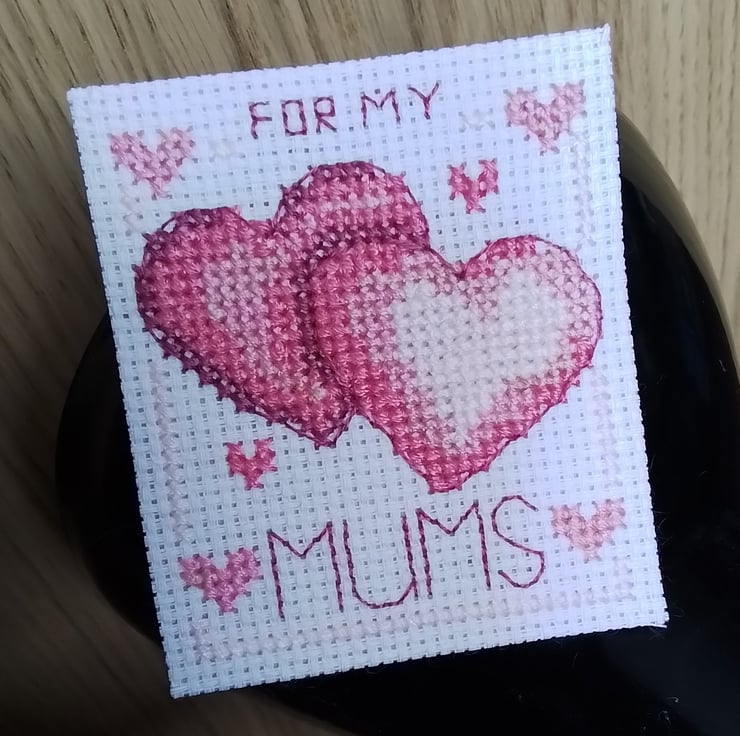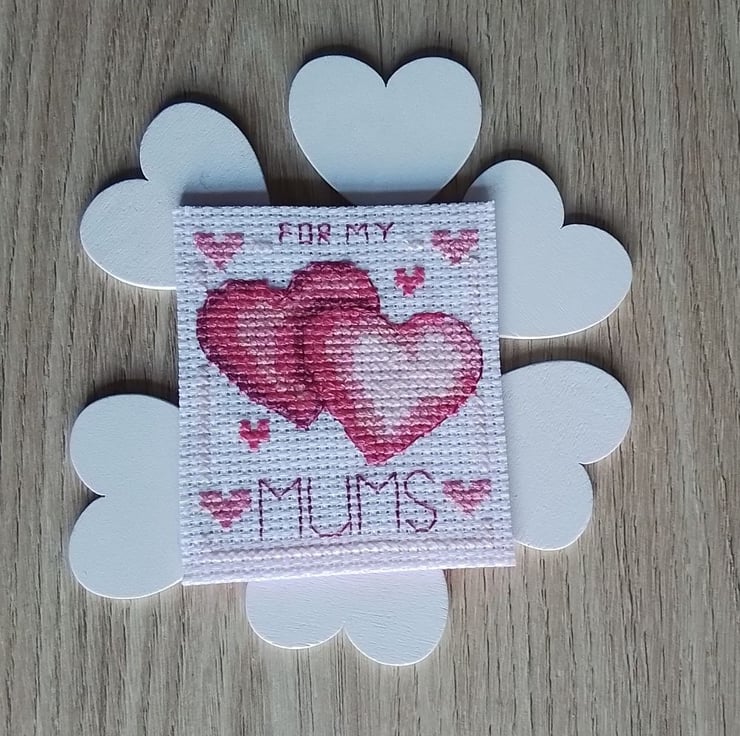 This is a hand stitched fridge magnet which reads “For My Mums”.
