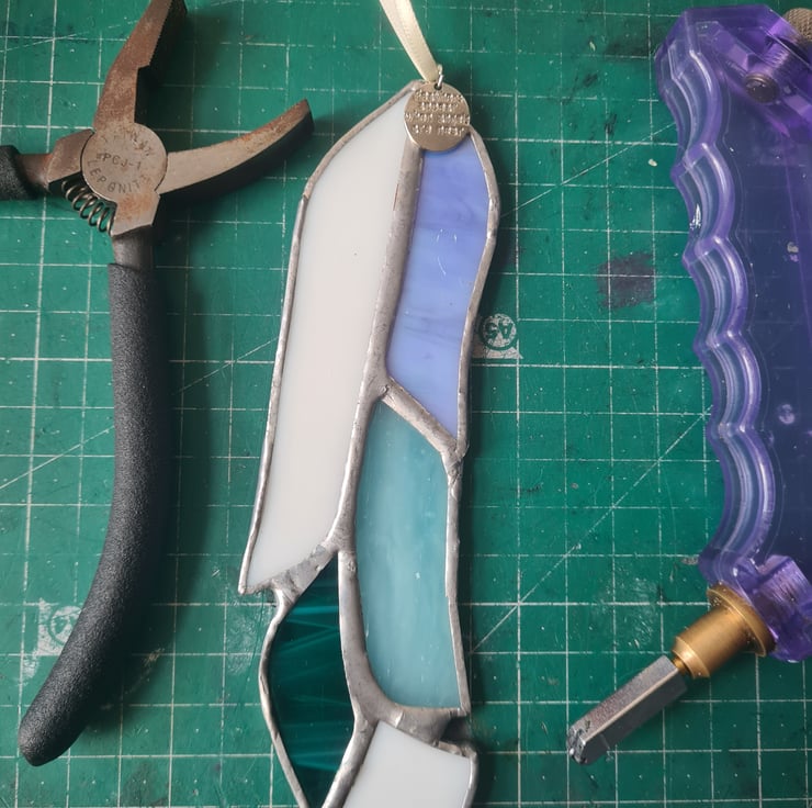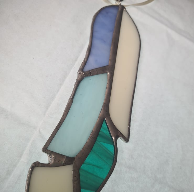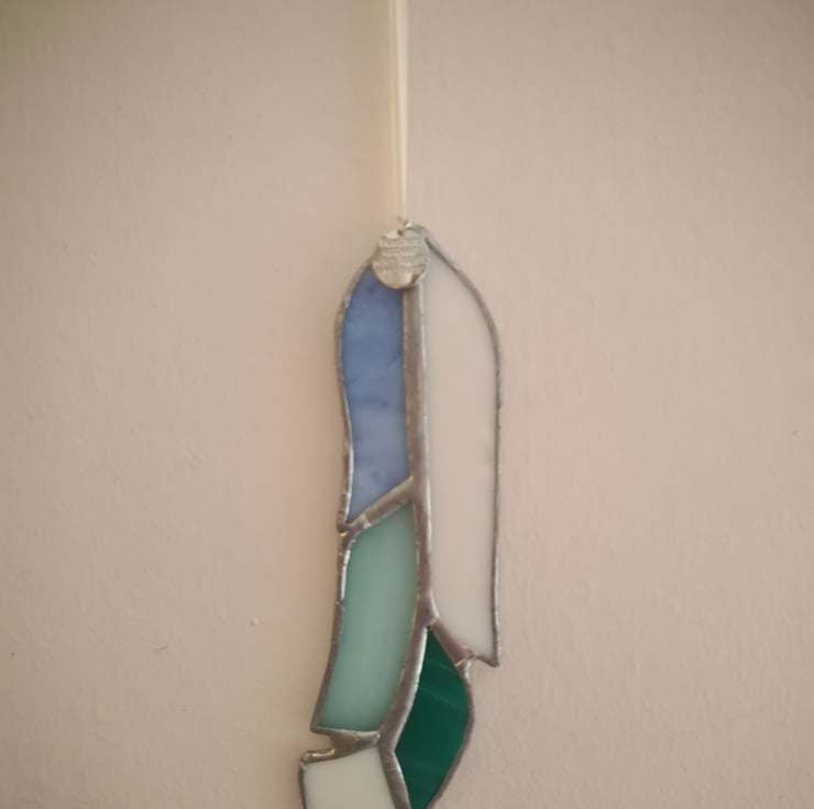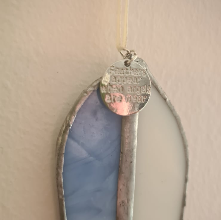 Gorgeous stained glass feather with tag that reads "Feathers appear when angels are near". A lovely memorial piece as a way to cherish memories of loved ones forever. Hand crafted using the Tiffany method it is delicate to look at but made to last and will enchant you for years to come! Measuring 5x15cm approximately, will make a stunning gift.