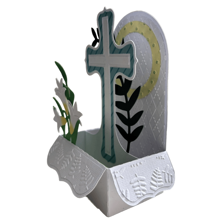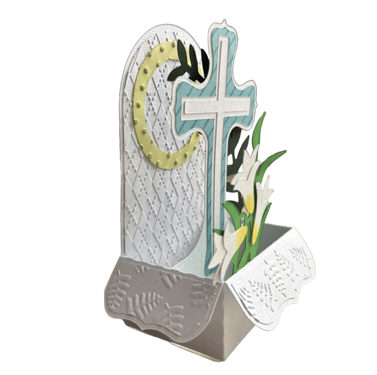 Designed to stand upright when opened, this card creates a captivating three-dimensional scene that highlights the cross and its lovely floral accents. Perfect for Easter celebrations, it conveys heartfelt messages of hope, renewal, and joy. This thoughtful and meaningful card is the ideal way to connect with loved ones during this special time of year.