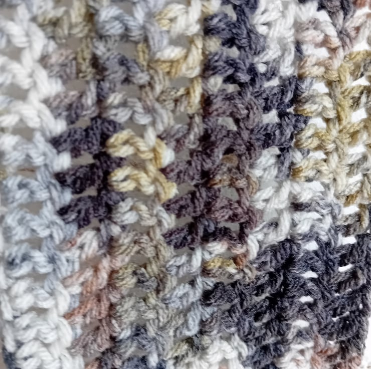 Elegant hand-crocheted scarf made with multicoloured yarn.
