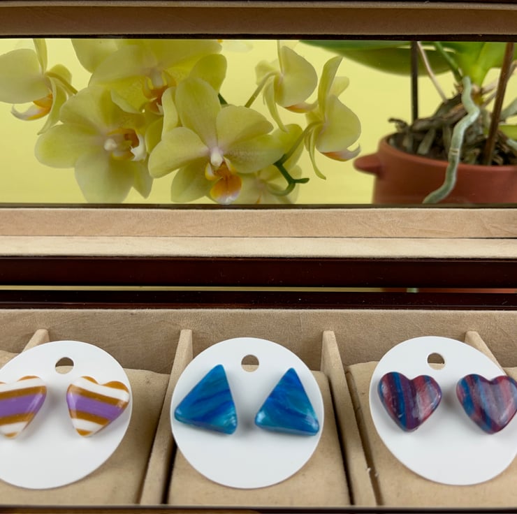 The set includes 3 pairs of handmade polymer clay earrings.