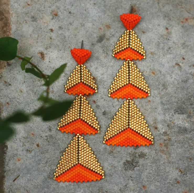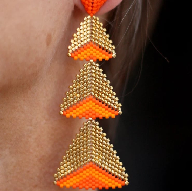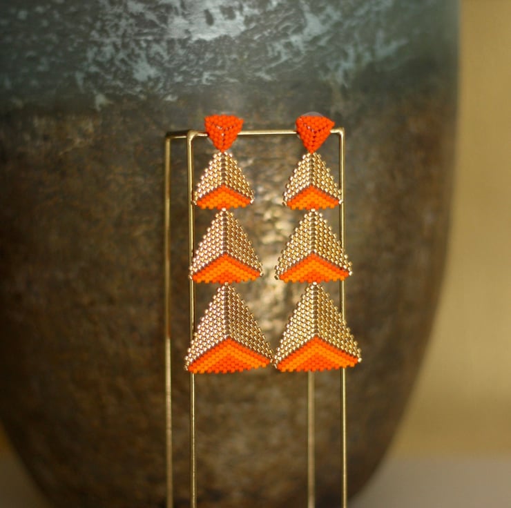 Party earrings! Orange and gold statement earrings. Hand woven with 24kt gold plated Miyuki beads to give an opulent feel.