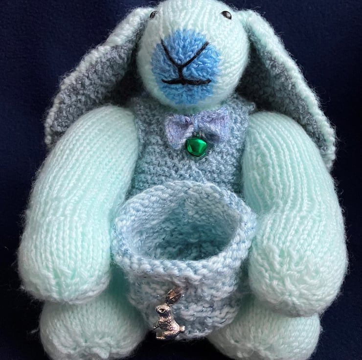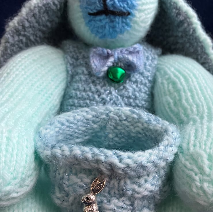 Hand-knitted rabbit with matching keepsake holder.