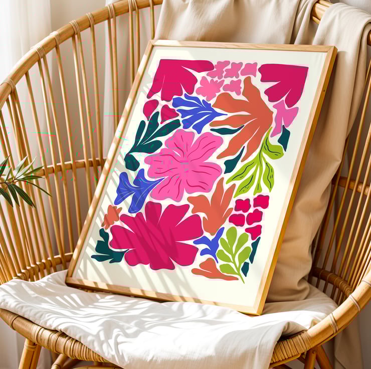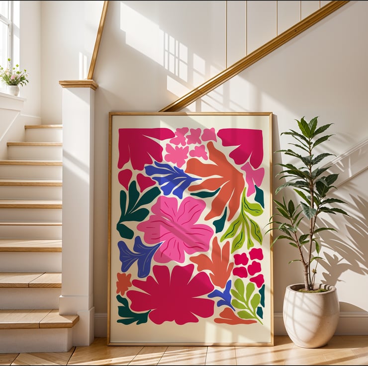 Brighten up your space with this colorful floral wall art print, featuring a bold mix of tropical-inspired flowers and botanical elements. This modern abstract flower print is perfect for adding a vibrant touch to your boho decor, tropical home, or contemporary space. The high-resolution digital download includes five popular sizes, making it easy to print and frame at home. Whether you’re decorating a living room, bedroom, office, or nursery, this botanical wall art brings a fresh and stylish aesthetic.