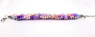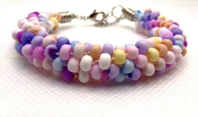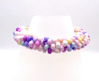 Pretty pastel coloured hand braided bracelet. I have hand braided this bracelet using the ancient Japanese method of kumihimo. Each glass bead is a Toho size 6 and has been threaded on to 8 individual strong cords and braided using a circular disc.