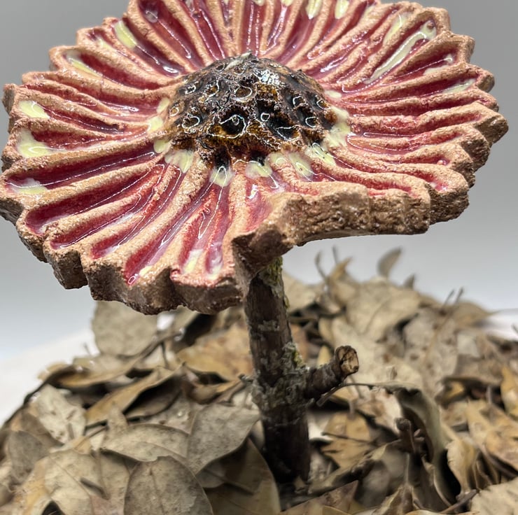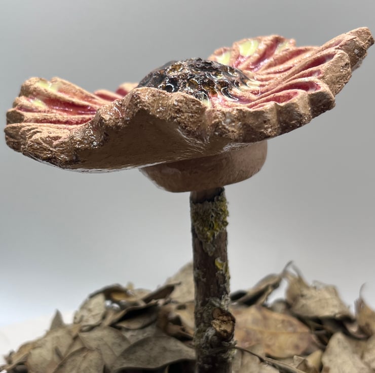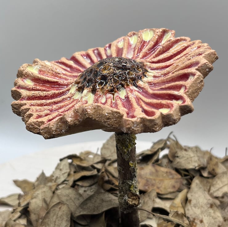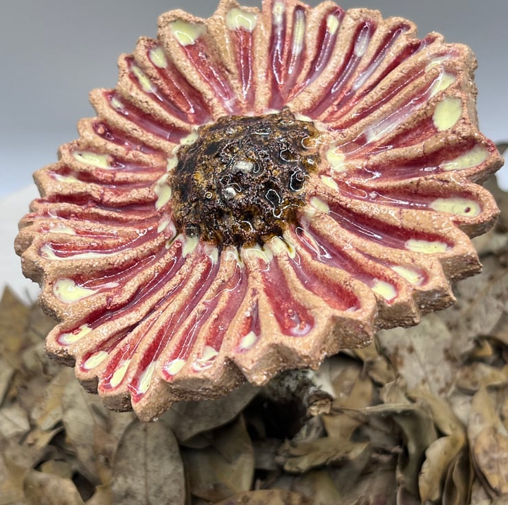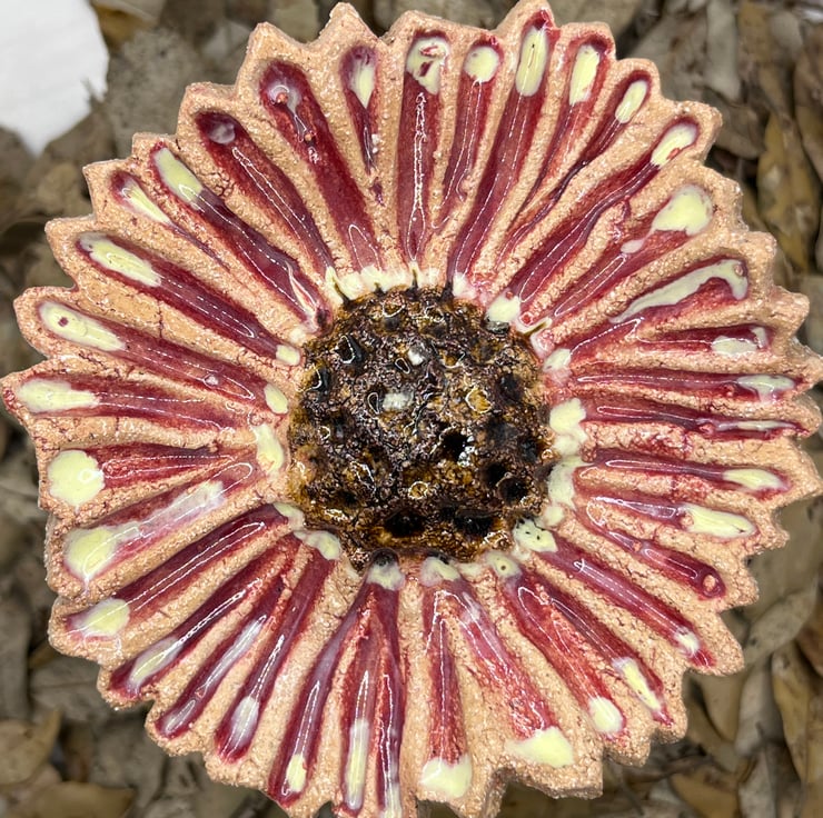 Sunflower cane topper made with stoneware clay…115mm diameter and 45mm deep…with a 8/9mm hole in the base …(no cane supplied )…please note this item is not frost proof…thank you for looking…JK16