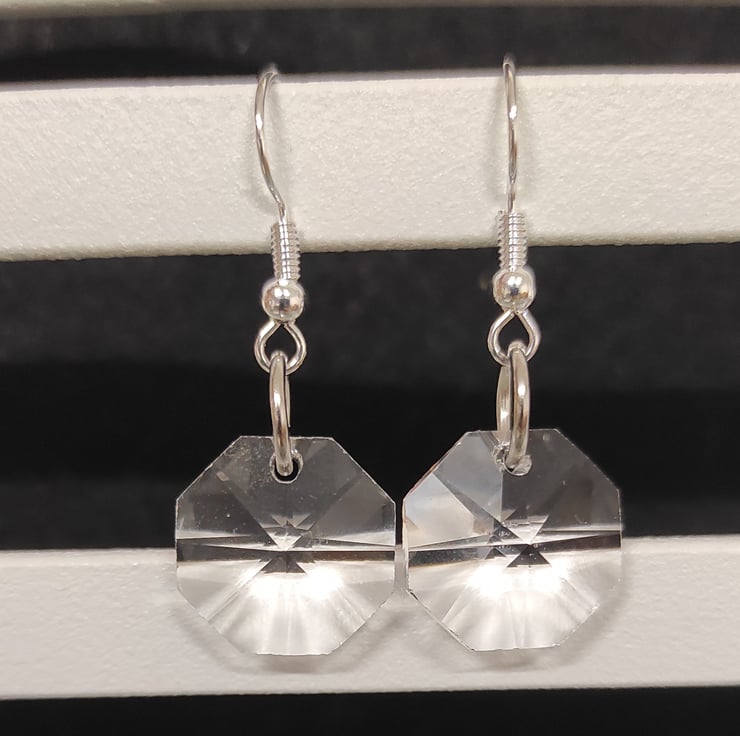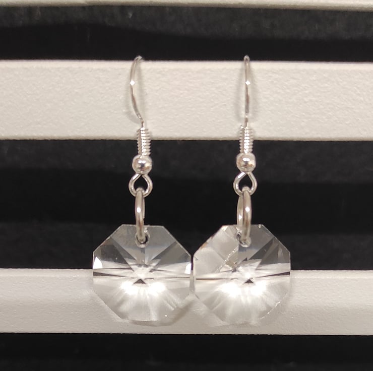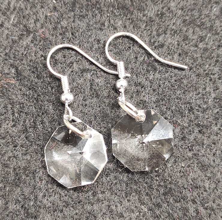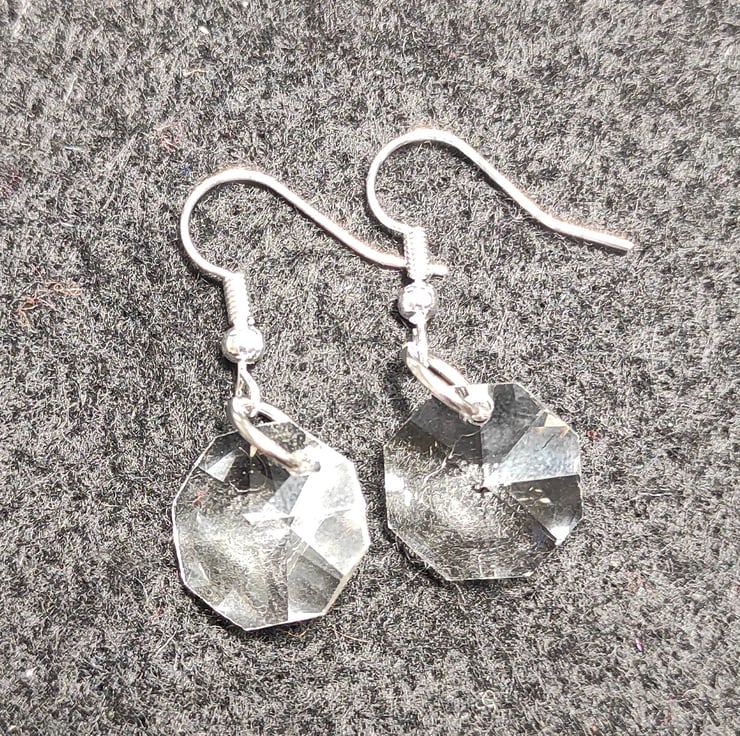 Crystal glass hangs on silver plated hooks to make these gorgeous earrings. They hang at around 3.5 cm in length. The crystal glass has been upcycled from a crystal glass chandelier, carefully washed and repurposed into these earrings.