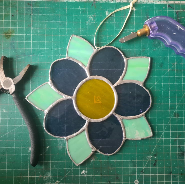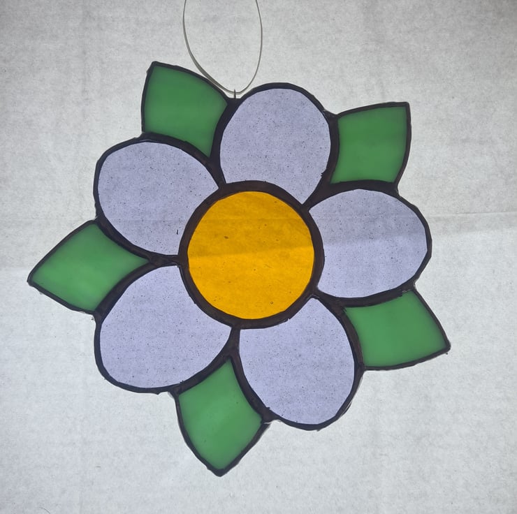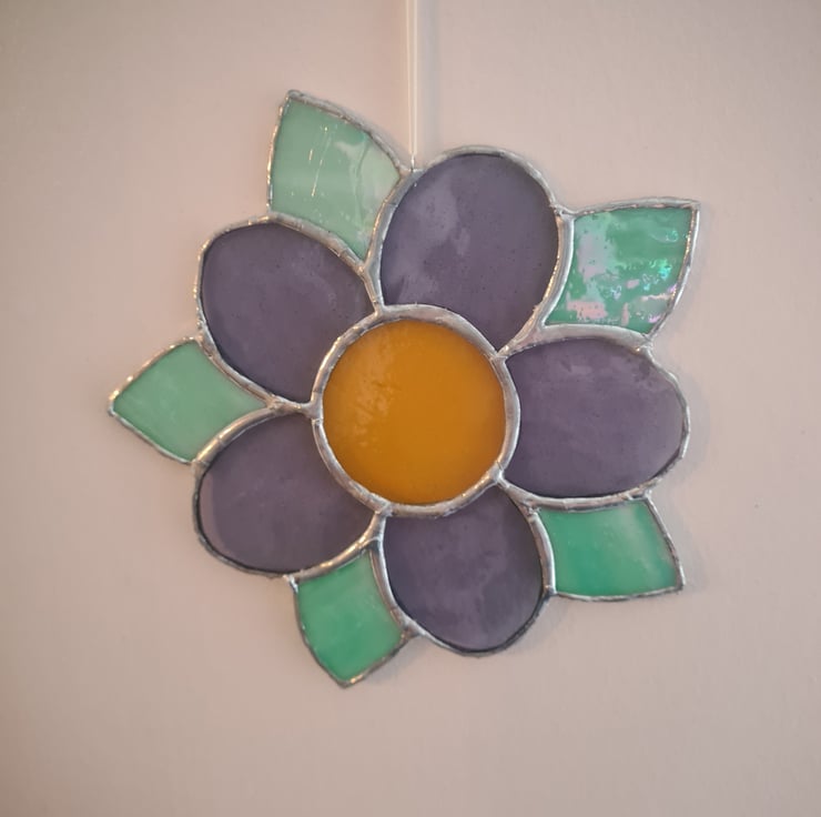 This simple stained glass flower mandala, showcases transparent, opaque and iridescent glass to great effect! Cute gift for a baby, wee girl or garden lover! Hand crafted using the Tiffany method it is delicate to look at but made to last and will enchant you for years to come! Measuring 20x20cm approximately, hanger and suction cup included!