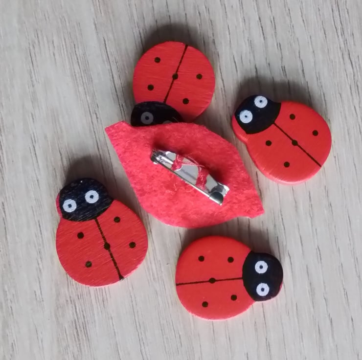 This is backed with red felt and has a silver tone brooch pin on the back.