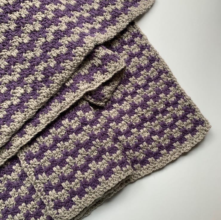 This listing is for a beautiful striped design baby blanket. It would make unique gift for a newborn baby which can be treasured for years to come. It has been made from purple and grey aran yarn and is approximately 80 x 100 cm.