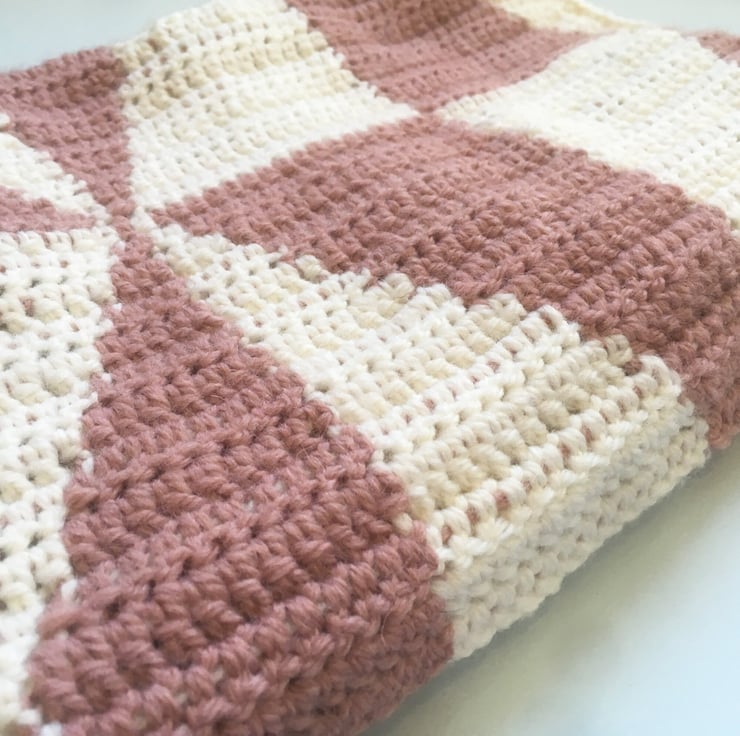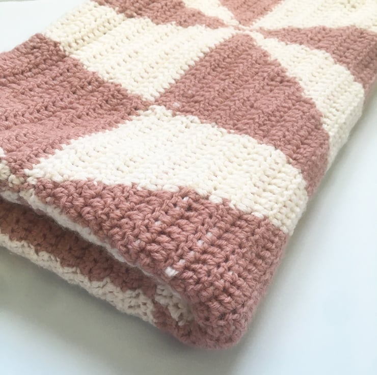 This listing is for a beautiful geometric design baby blanket. It would make unique gift for a newborn baby which can be treasured for years to come. It has been made from pale pink and cream aran yarn and is approximately 65 x 100 cm.