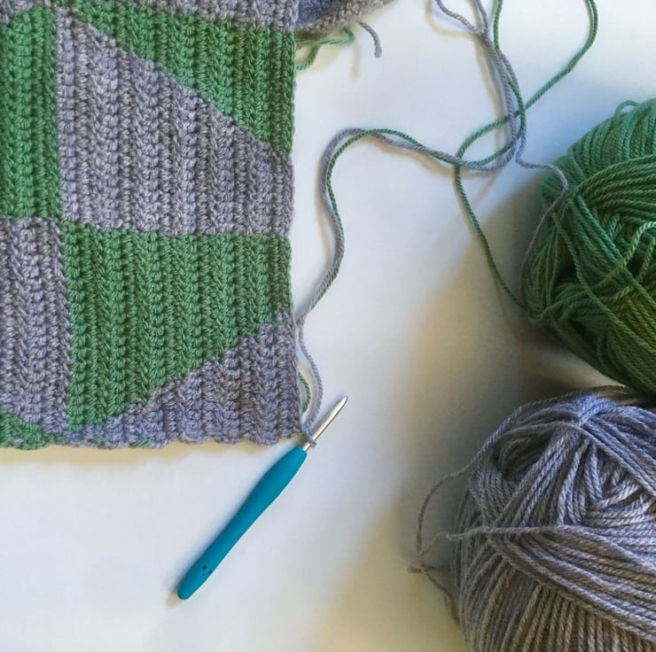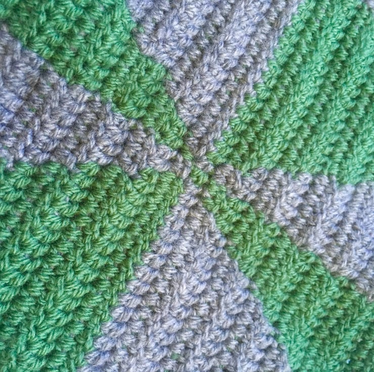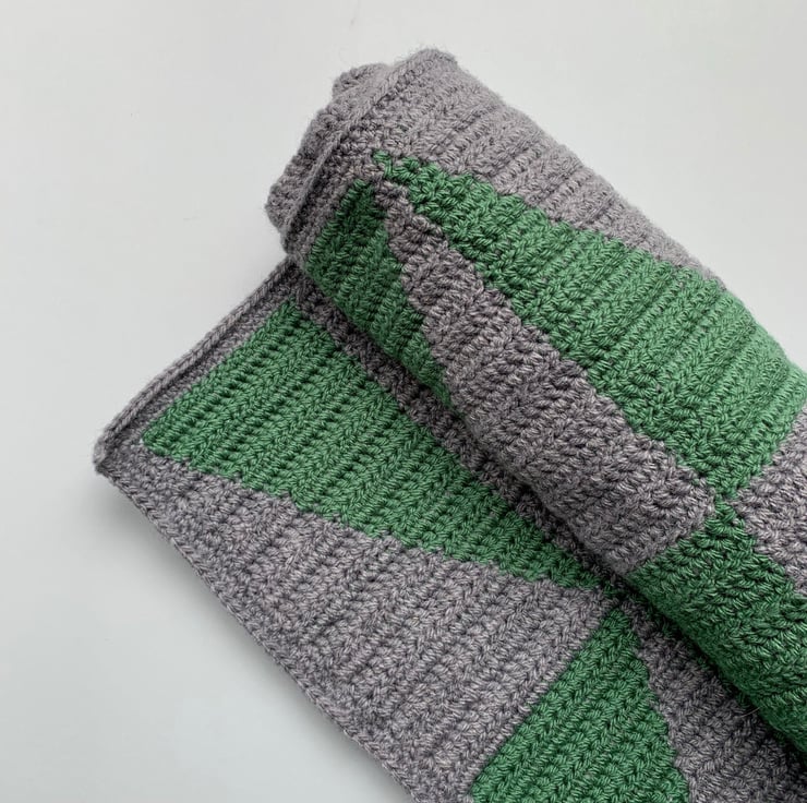 This listing is for a beautiful geometric design baby blanket. It would make unique gift for a newborn baby which can be treasured for years to come. It has been made from green and grey aran yarn and is approximately 65 x 100 cm.