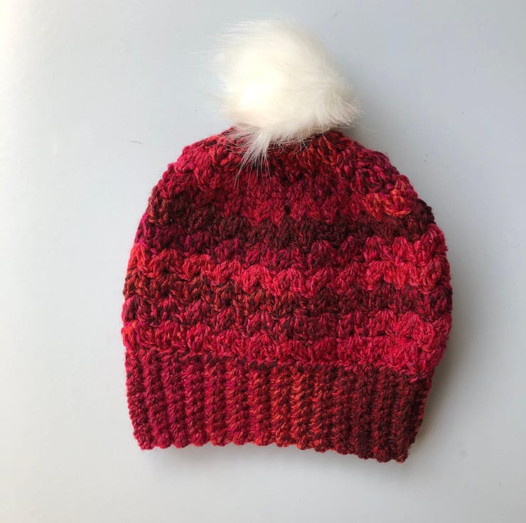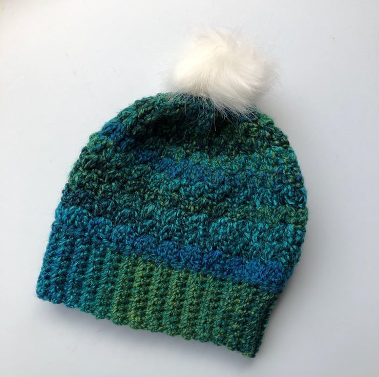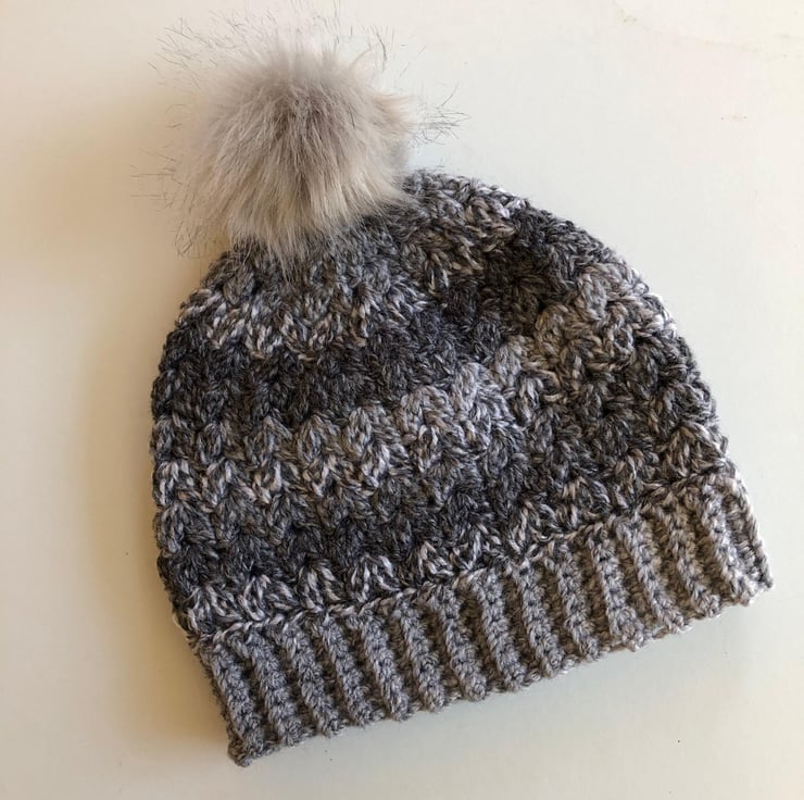These lovely marbled hats are handmade with James Brett Marble yarn and have a detachable faux fur pompom. The hat can be worn with or without the pom, as you choose. Each hat is beautifully warm and perfect for long autumn, winter walks.