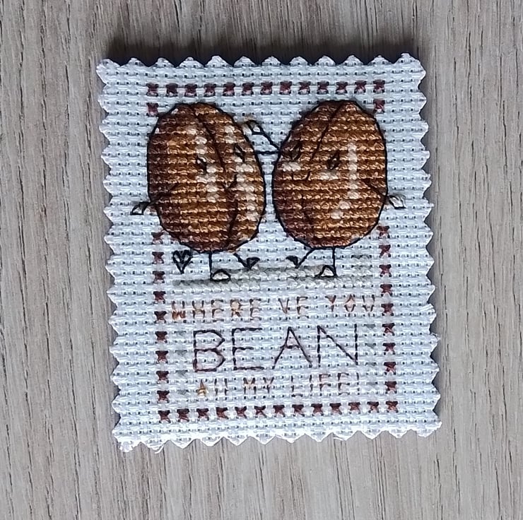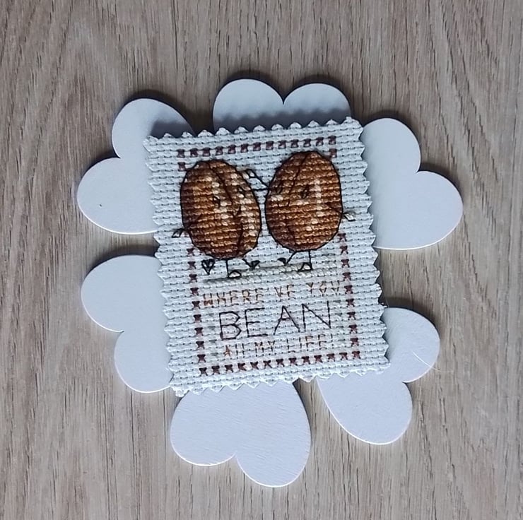 This is a hand stitched magnet which is backed in brown felt.