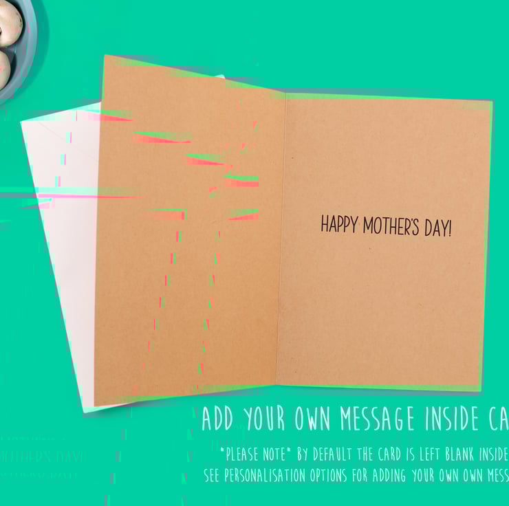 This rustic Kraft card is perfect for mums who love a giggle, making it a unique and thoughtful choice. Each card is handmade in the UK and can be personalised with a special message inside.