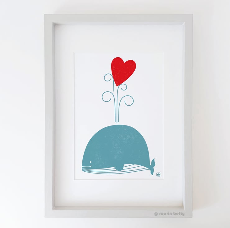 'I Whaley Love You' is my original design ©. I've printed it on high quality 190gsm acid free archival textured watercolour paper using my Canon ImageProGraf printer. The Lucia Pro archival inks give you a deep rich long-lasting colour. I then mount the print into a white, acid free, bevel edge mount board and the print is sold, unframed, ready for you to pop into your favourite A4 or 8x6inch (203 x 152mm) frame.