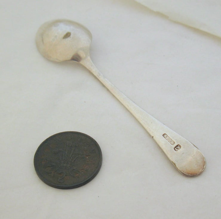 You will receive the spoon shown in the photos. It is about 12cm long, it has a nice zigzag border to the handle, and it's vintage and pre-loved so it does have some wear to its original silver plating, although this doesn't affect its efficacy as a coffee spoon at all.
