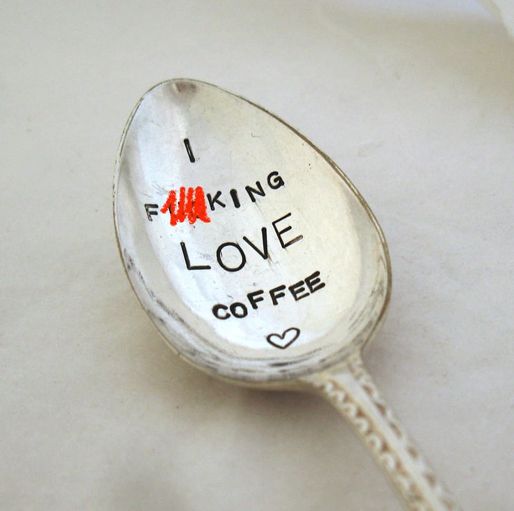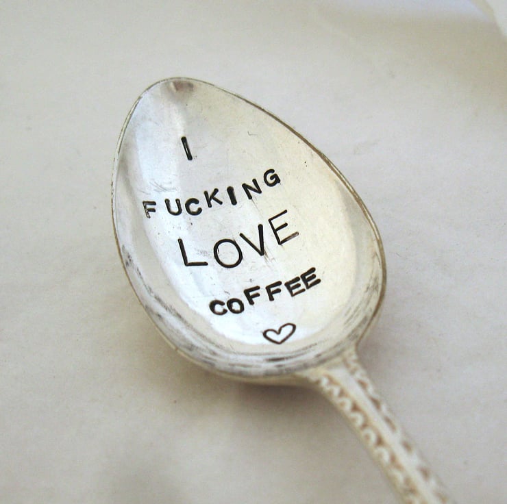 This spoon's rude. Let's just get that on the record. It's an expression of how much someone who really, REALLY loves coffee really, REALLY loves coffee. Although that person is not me. I can't stand the stuff. Anyway if you know someone who really, REALLY loves their coffee and uses the F-word to emphasise that... here is the perfect little gift for them. Perhaps to be given along with some fancypants designer beans or a handmade mug (there are lots of lovely ones on Folksy!) But yes. It's rude.
