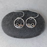 I have created these earrings by cutting circles from recycled sterling silver, then doming and hammering them. Sterling silver ear posts were soldered to the backs and the earrings were given a polished finish. They are part of a collection of silver stud earrings.