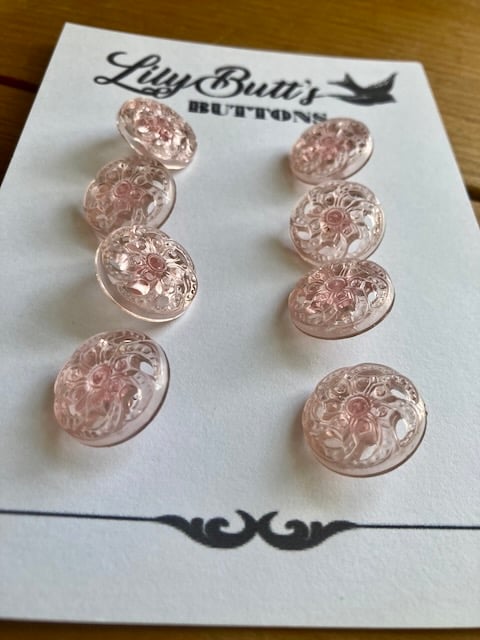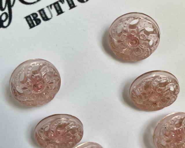 8 Vintage Clear Pink Flower Buttons - these are such a delicate pink, and sooo pretty, would look great on a light jacket or shirt.
