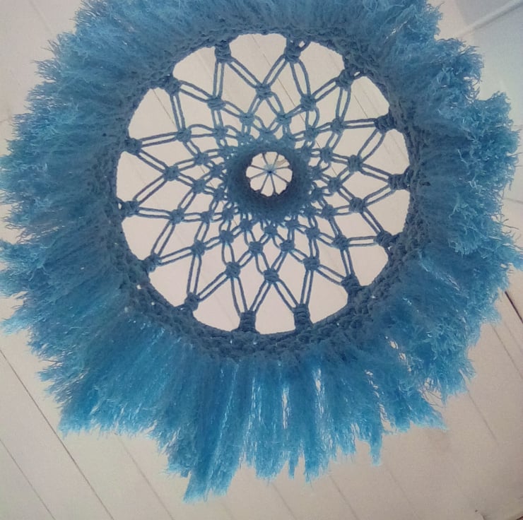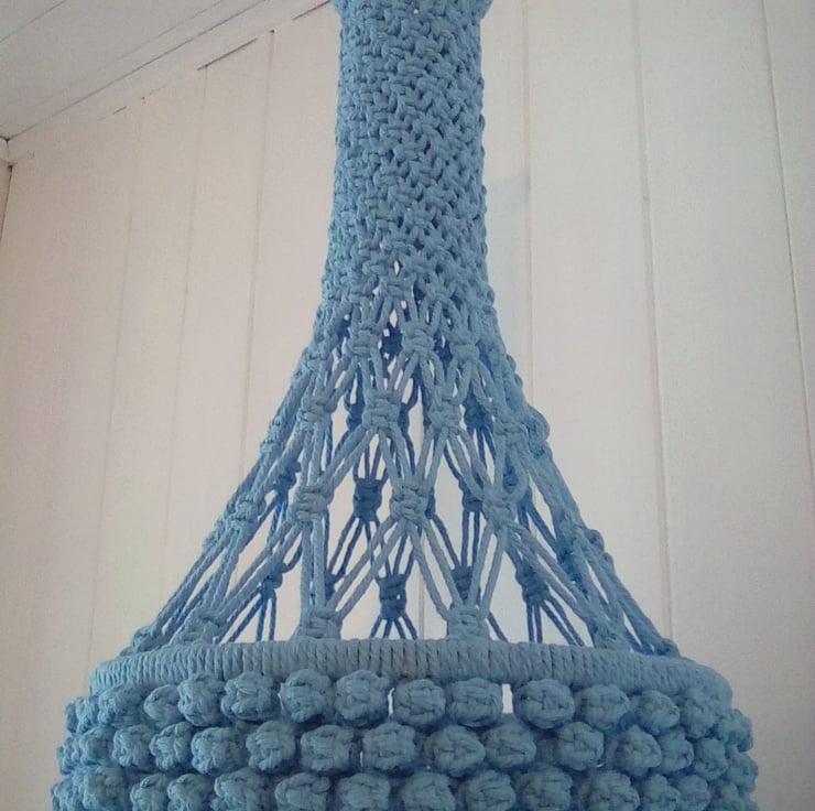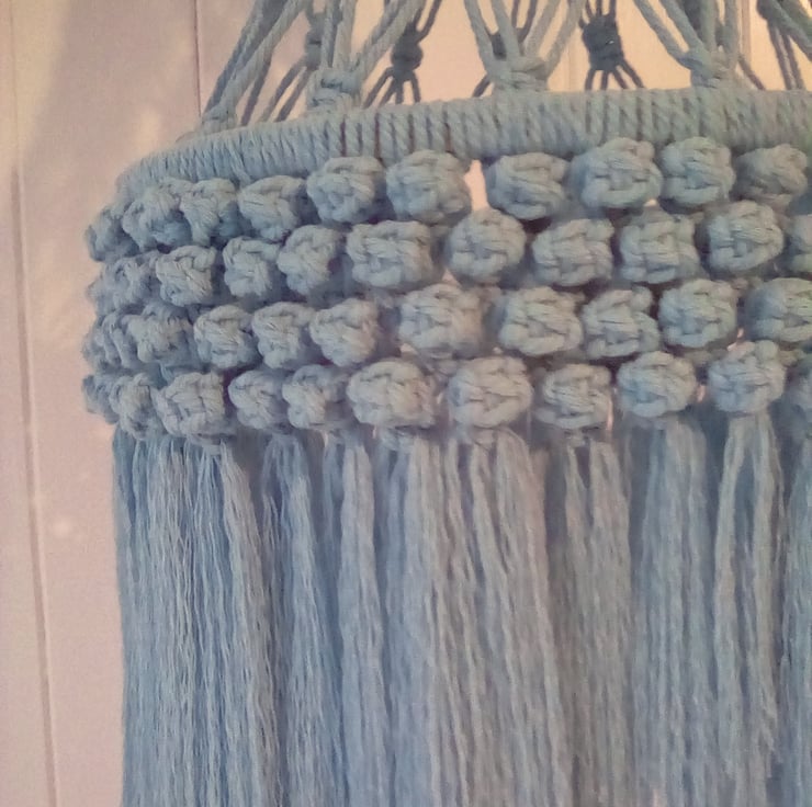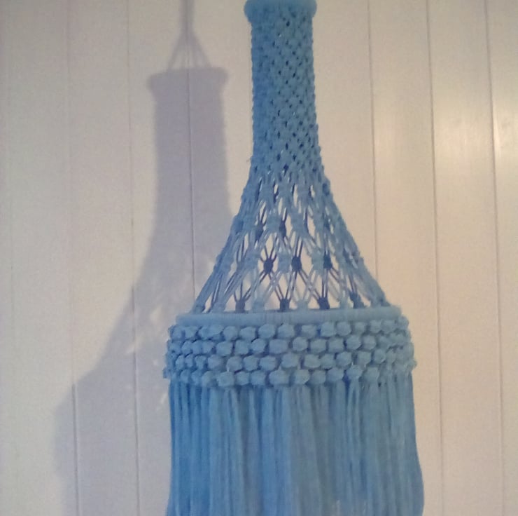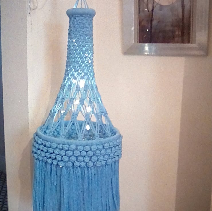 Hanging macrame lantern chandelier. Total length is 75cm and 27cm diameter.