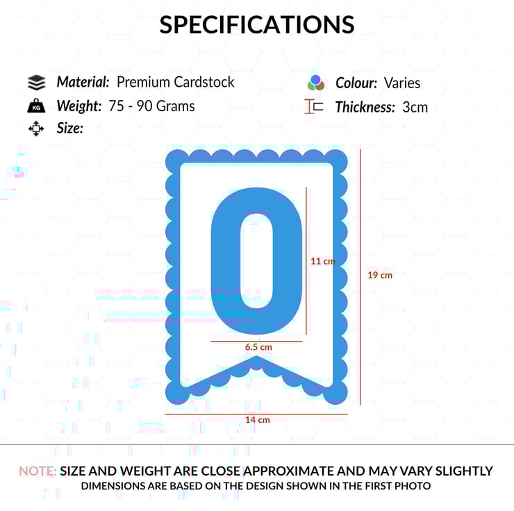 Each flag measures approx. 140mm x 190mm (5.5" x 7.5"). Includes 1.8m of ribbon for flexible placement. Tassel lengths may vary slightly but suit the flag's size.