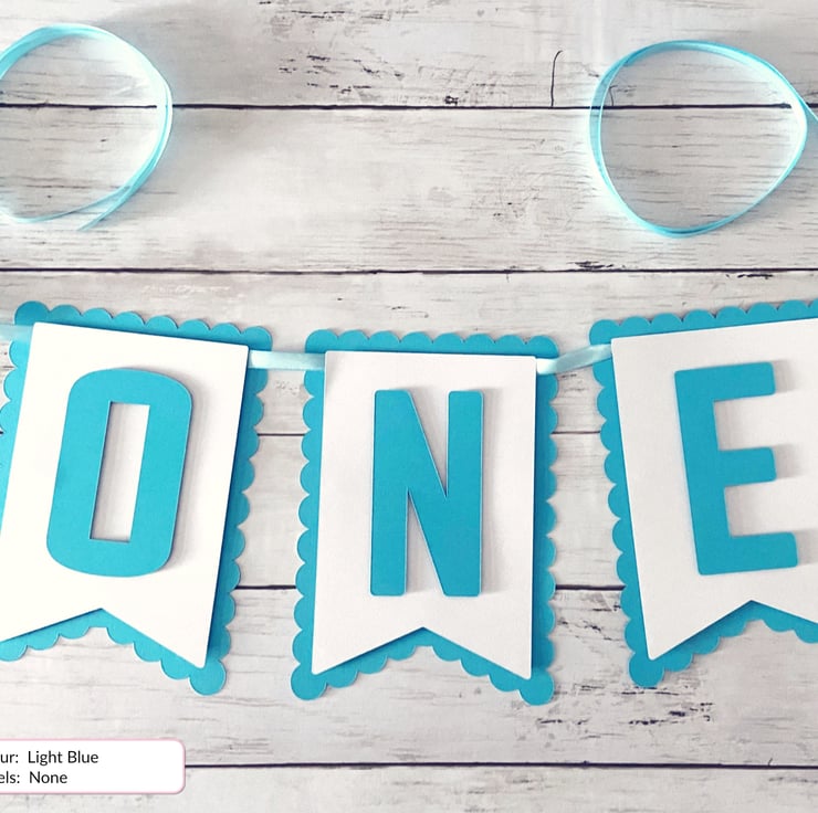 Celebrate your baby boy's first birthday with our beautifully crafted 3D 'One' bunting banner. Designed for easy wall or high chair attachment with a ribbon, it's the perfect decoration for your little one's special day!