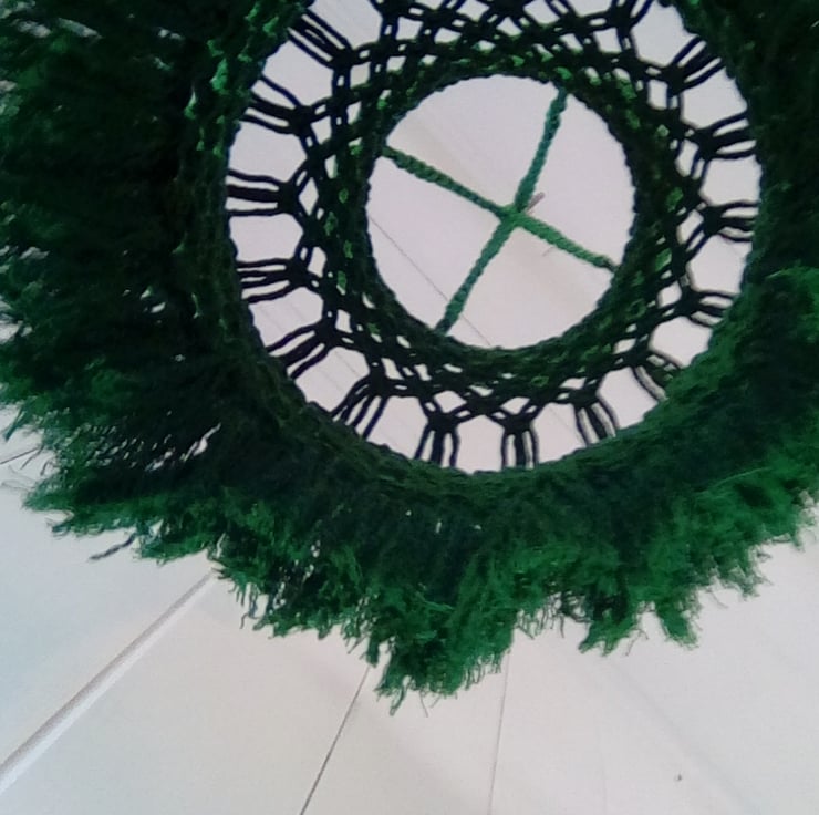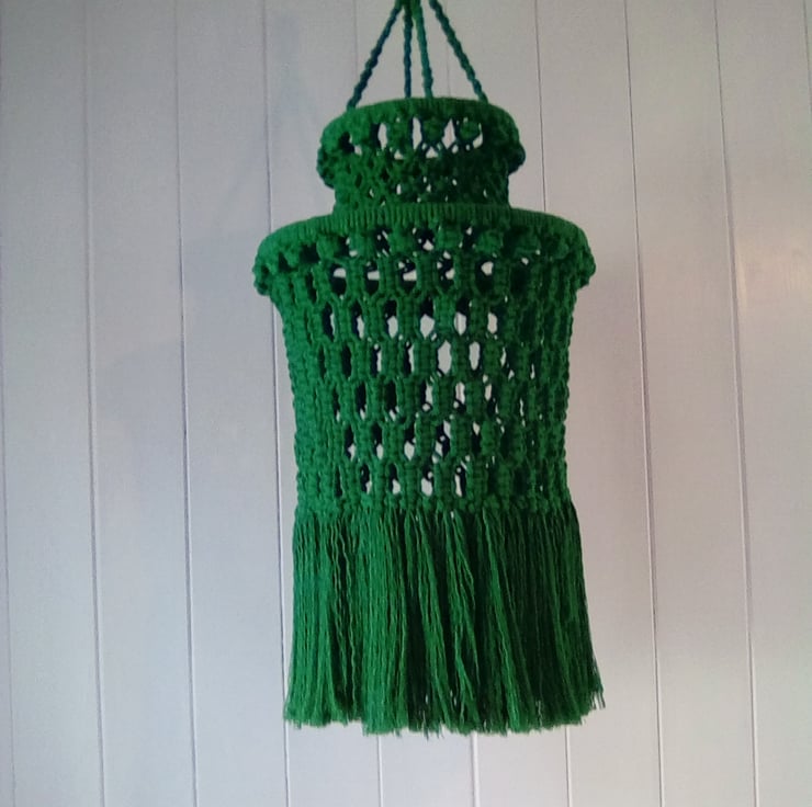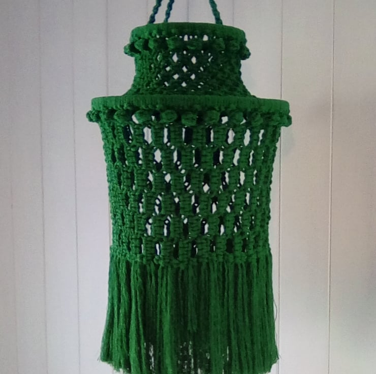 Macrame chandelier. Hanging loop. Approximate total length 65 cm. Approximate diameter 26cm.