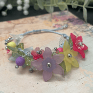 Designed and created by me in my Kent studio in pretty colors of lilac and mauve interwoven with tiny glass seed beads and using unbreakable c-lon macrame thread knotted into the intricate design .