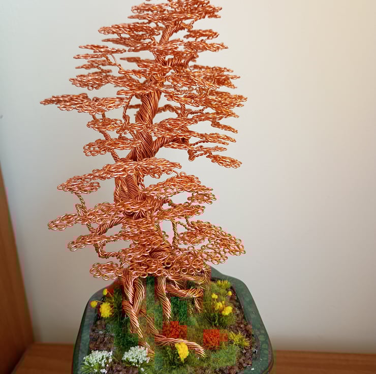 Being a retired tree surgeon,i am to old to do my first love of trees so i have been making wire trees for over 20 years and love exploring new ways and styles with different colours and sorts of wire.