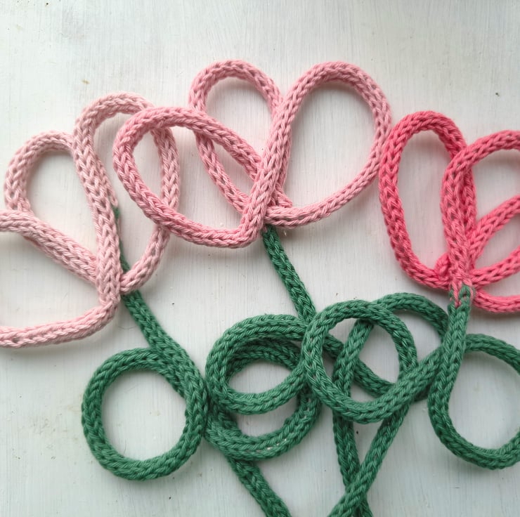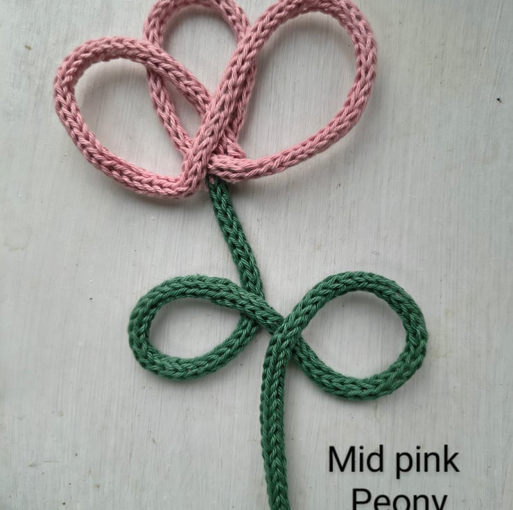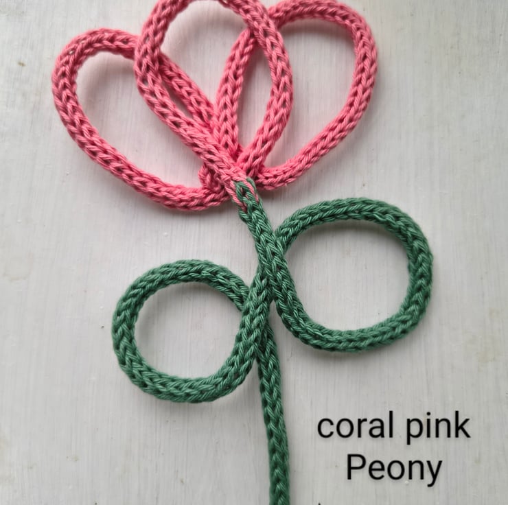 These peonies have been knitted by Annie in 100% cotton yarn using the softest of green and a beautiful range of pinks.