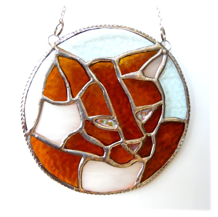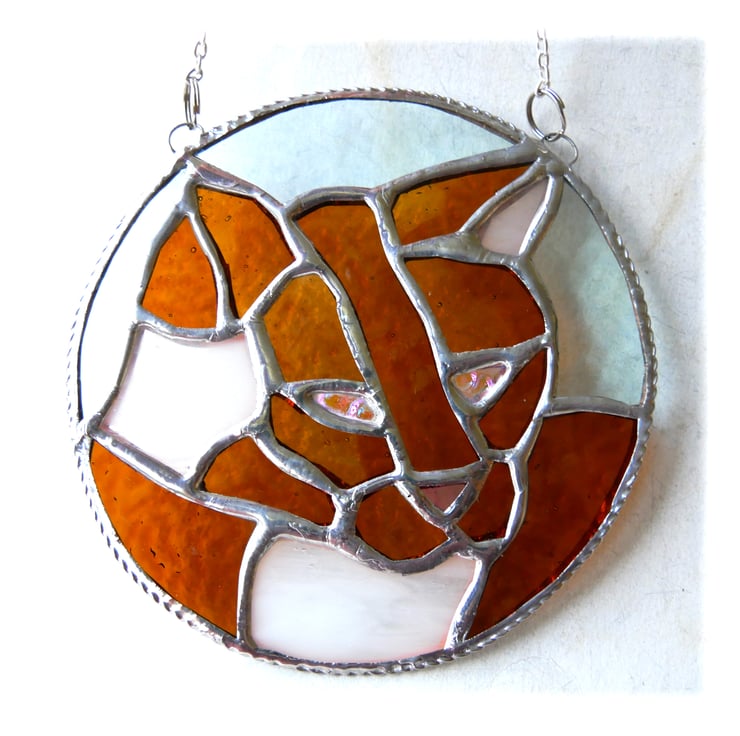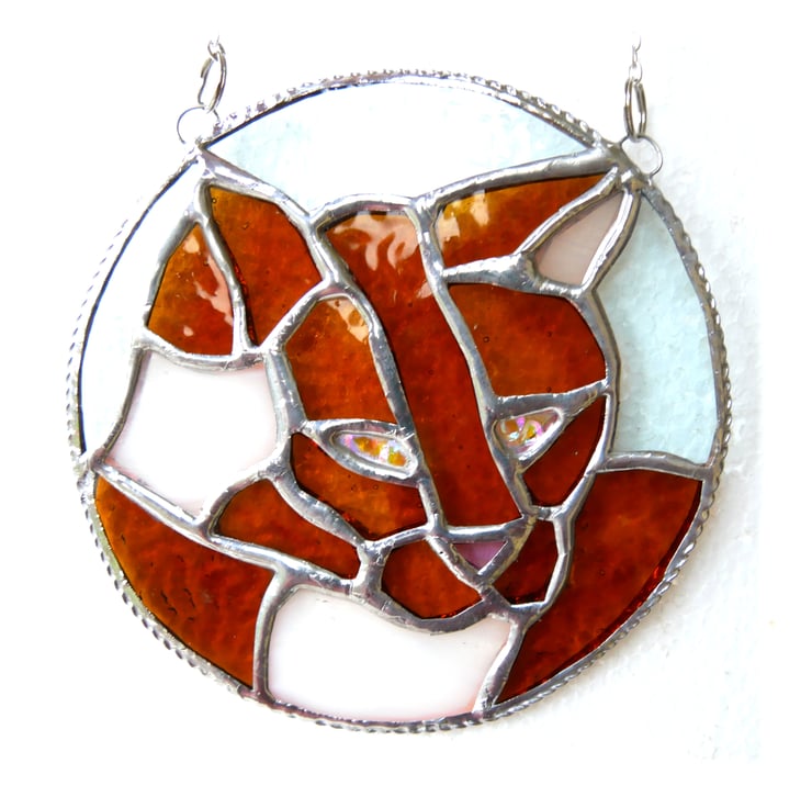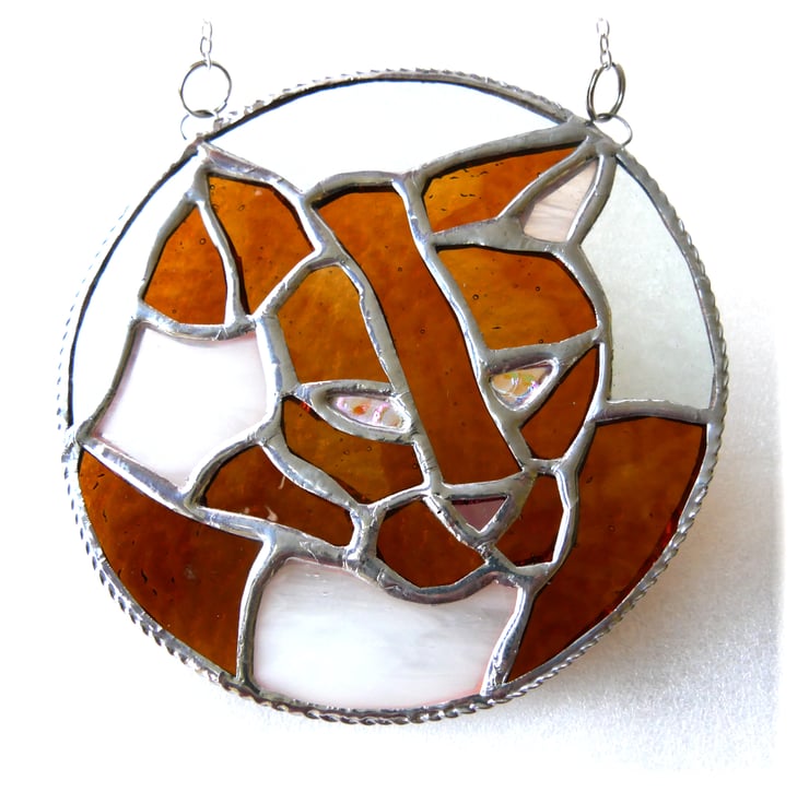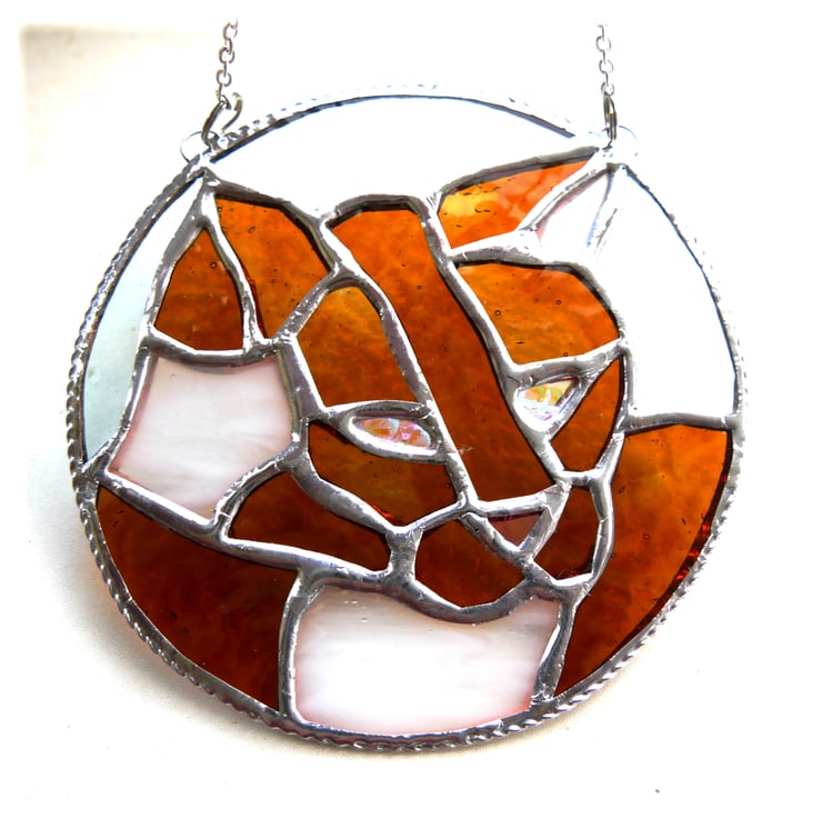 This is a stained glass suncatcher made using the Tiffany copper foil technique.