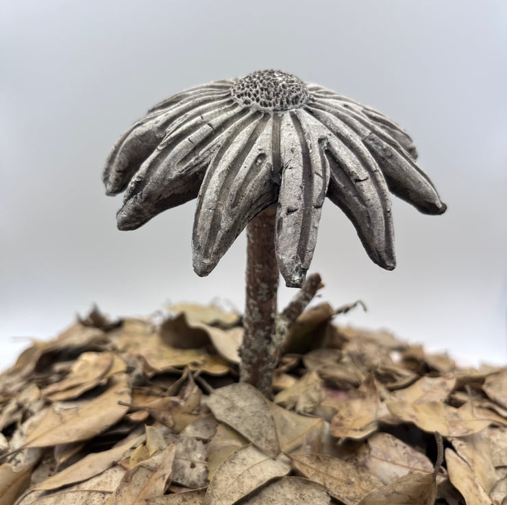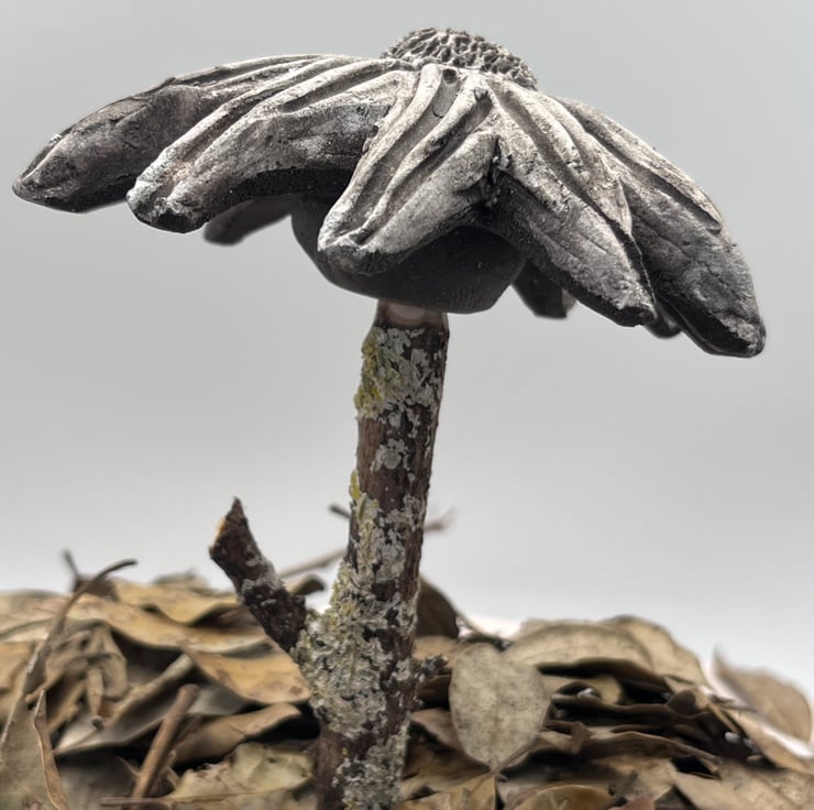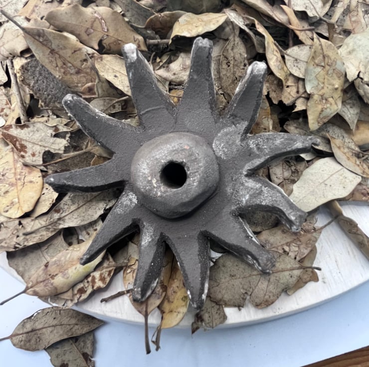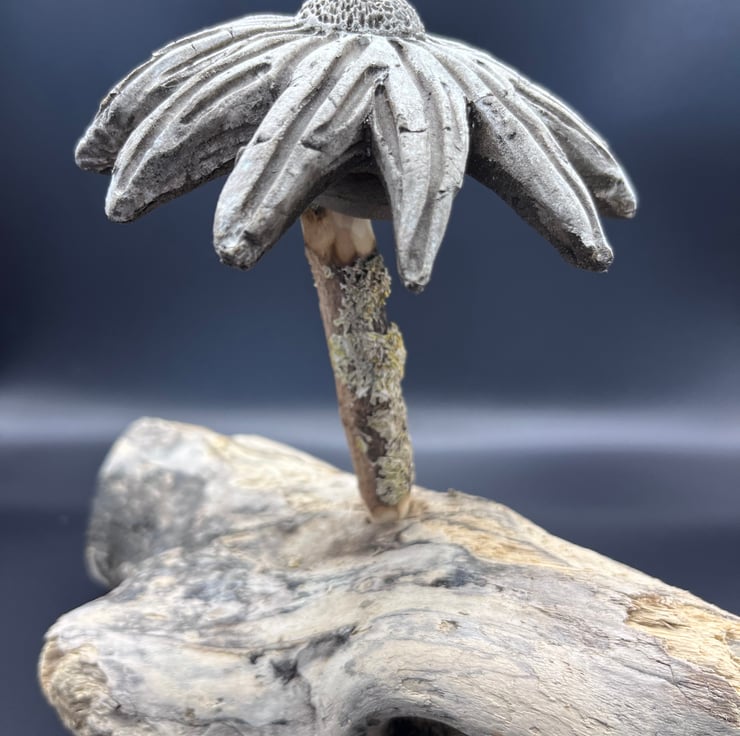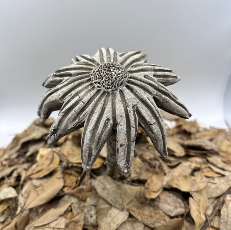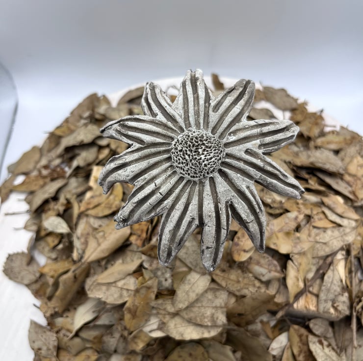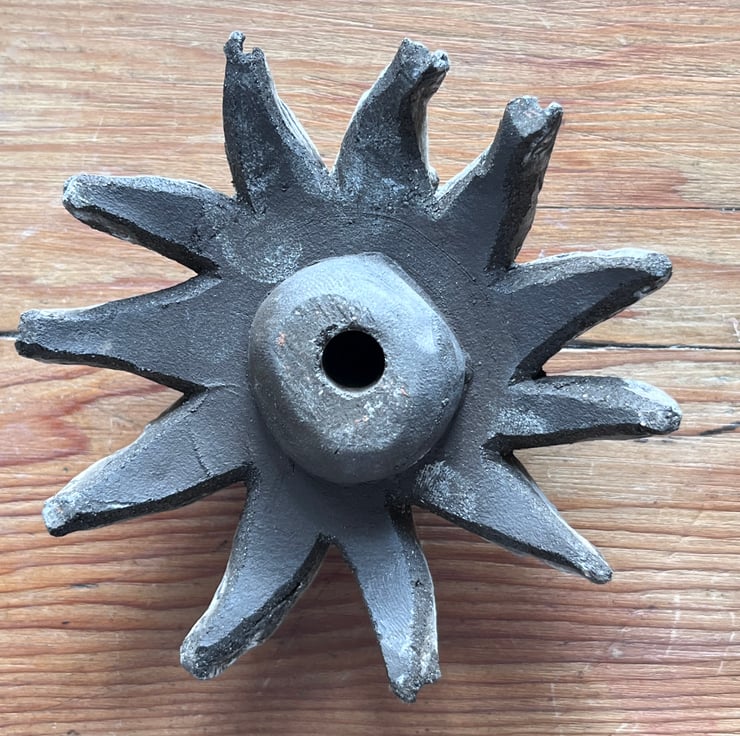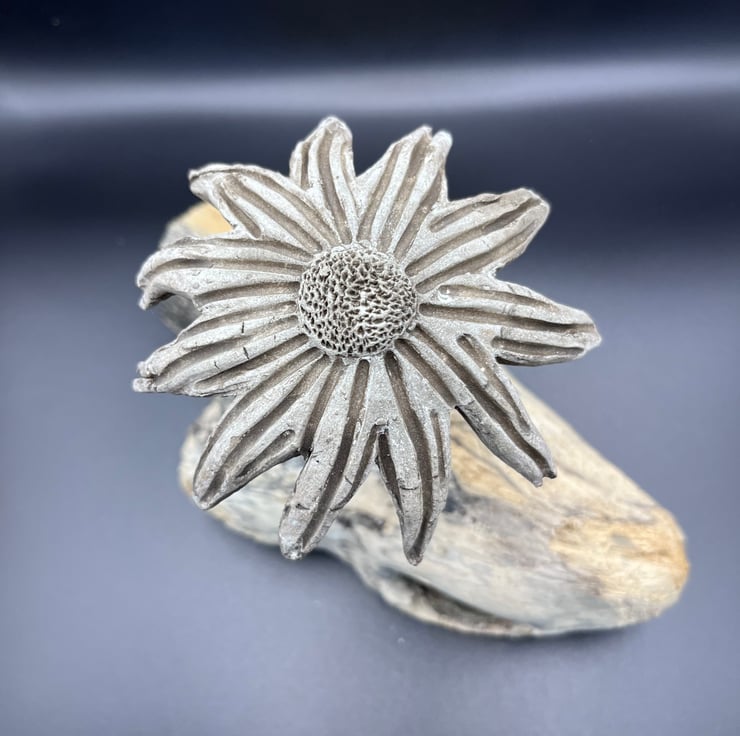Star flower cane topper …made in black stoneware clay and fired to 1060c …110mm wide and 40mm deep with a 8/9mm hole for a cane/stick (not supplied)…not frost proof…JK21.