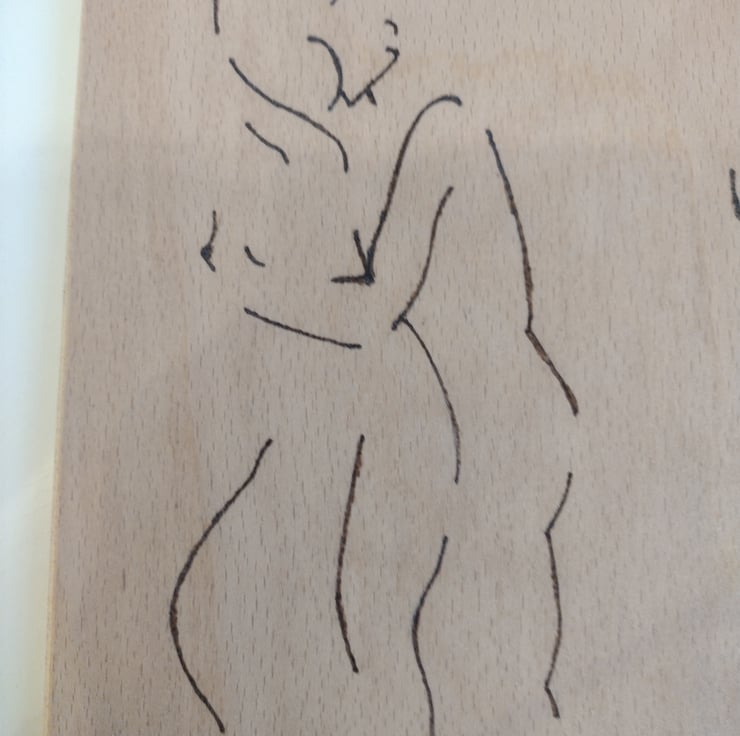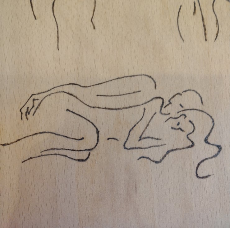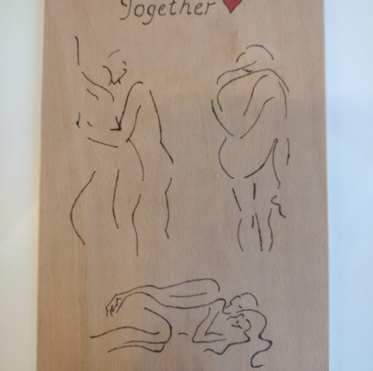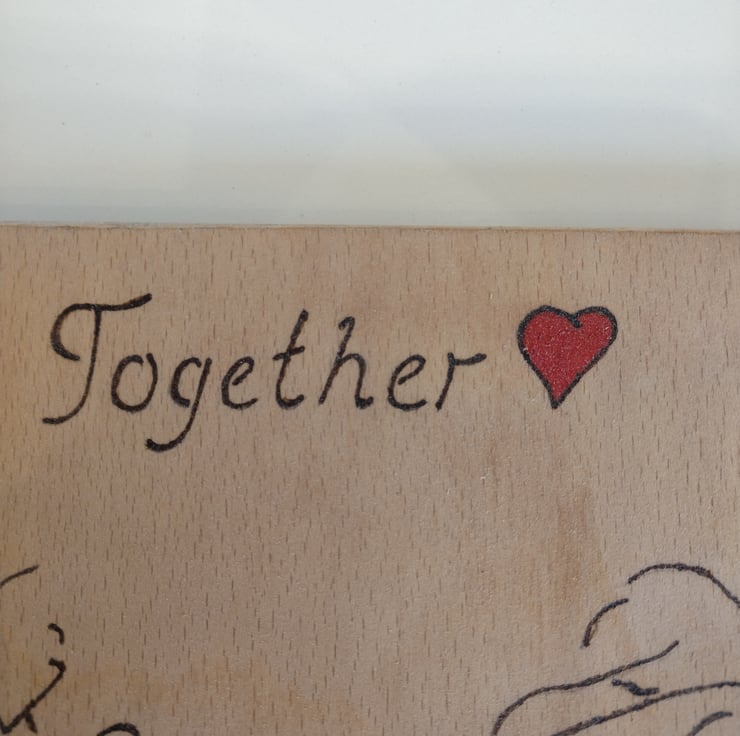 A bespoke handcrafted picture using pyrography to create multiple images based around the theme of together.