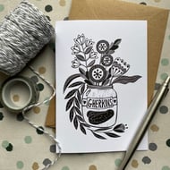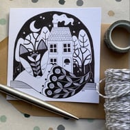 This A6 recycled card features a copy of my original pen and ink drawing. It comes with a recycled Kraft envelope but no plastic wrap as I’m trying to be good to the environment.