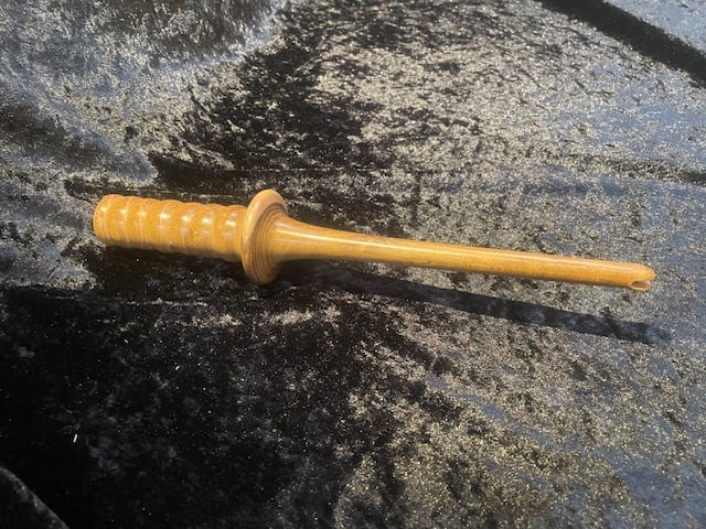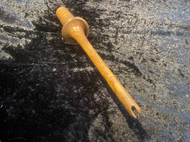 A very nice Nostapinne crafted from Chestnut with a lovely grain, I have finsihed it to a high gloss using waxes. It weighs 63 grams and is 250mm long ( 9 3/4")