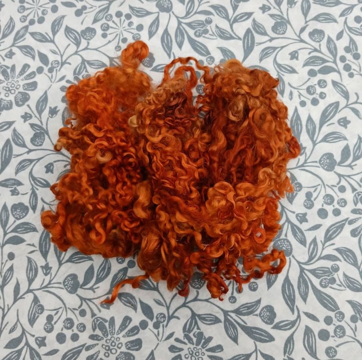 A 10g bundle of wensleydale fleece washed and hand dyed to a warm spice colour.