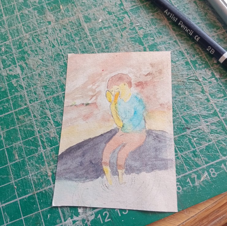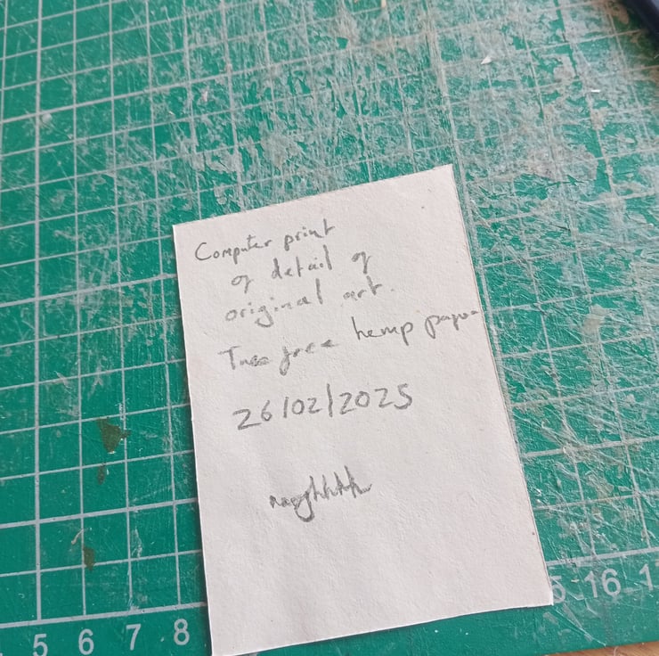 ACEO deskjet print of original art detail printed on tree free hemp paper