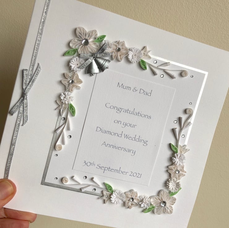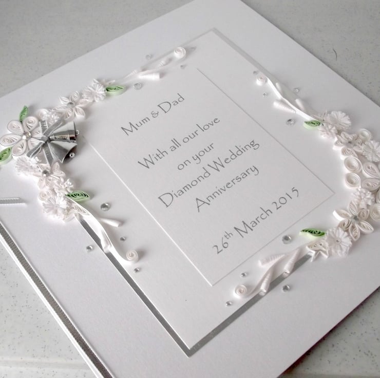 Quilled handmade diamond 60th wedding anniversary card, personalised