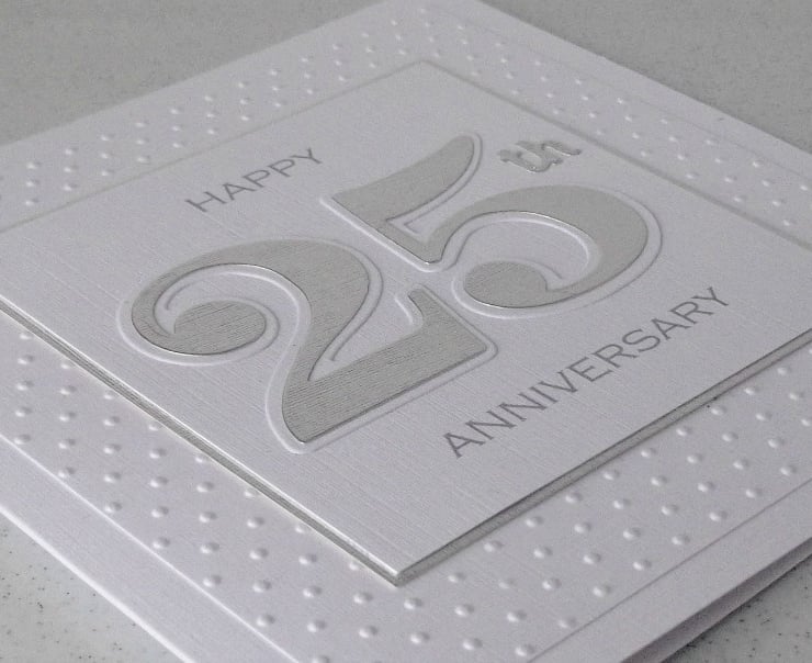 This handmade 25th anniversary card will be supplied with a quality envelope, in a protective cellophane sleeve. All cards are packaged carefully to ensure they arrive with you in pristine condition. As I make all my cards individually, the card you receive may differ very slightly from the photograph. However all cards are made to the highest standards and only high quality materials are used. The photographs do not really do justice to the cards. You really need to see and hold them to appreciate them fully. Please see my feedback for comments from previous customers.