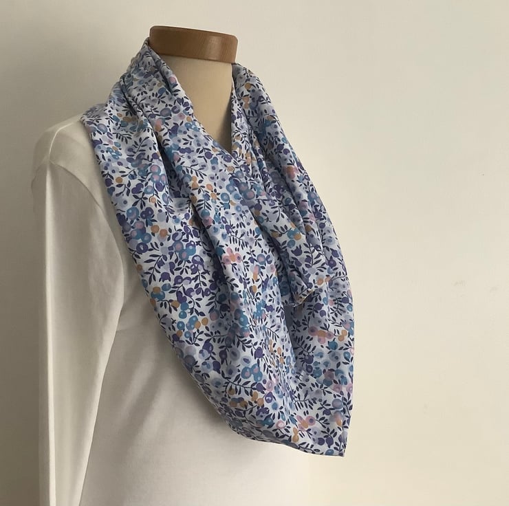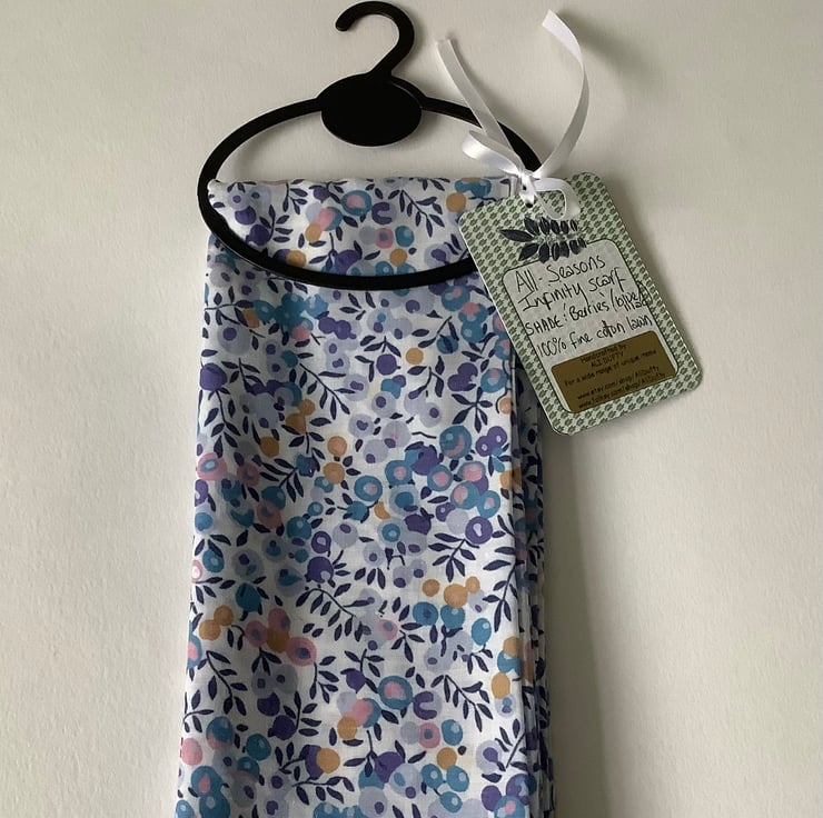 I have designed and made this lovely , lightweight infinity / tube -like scarf / skinny scarf with those in-betweeny months in mind ! I've used a deliciously soft , cotton lawn fabric, with enough drape to loop twice ,this accessory will take you through pretty much every season ! .