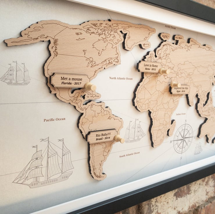 With its combination of personalized elements, fine craftsmanship, and striking design, this wooden world map is not just a decoration but a timeless keepsake that captures the spirit of exploration. Start your journey today and let your travel tales come alive with this remarkable piece of wall art.